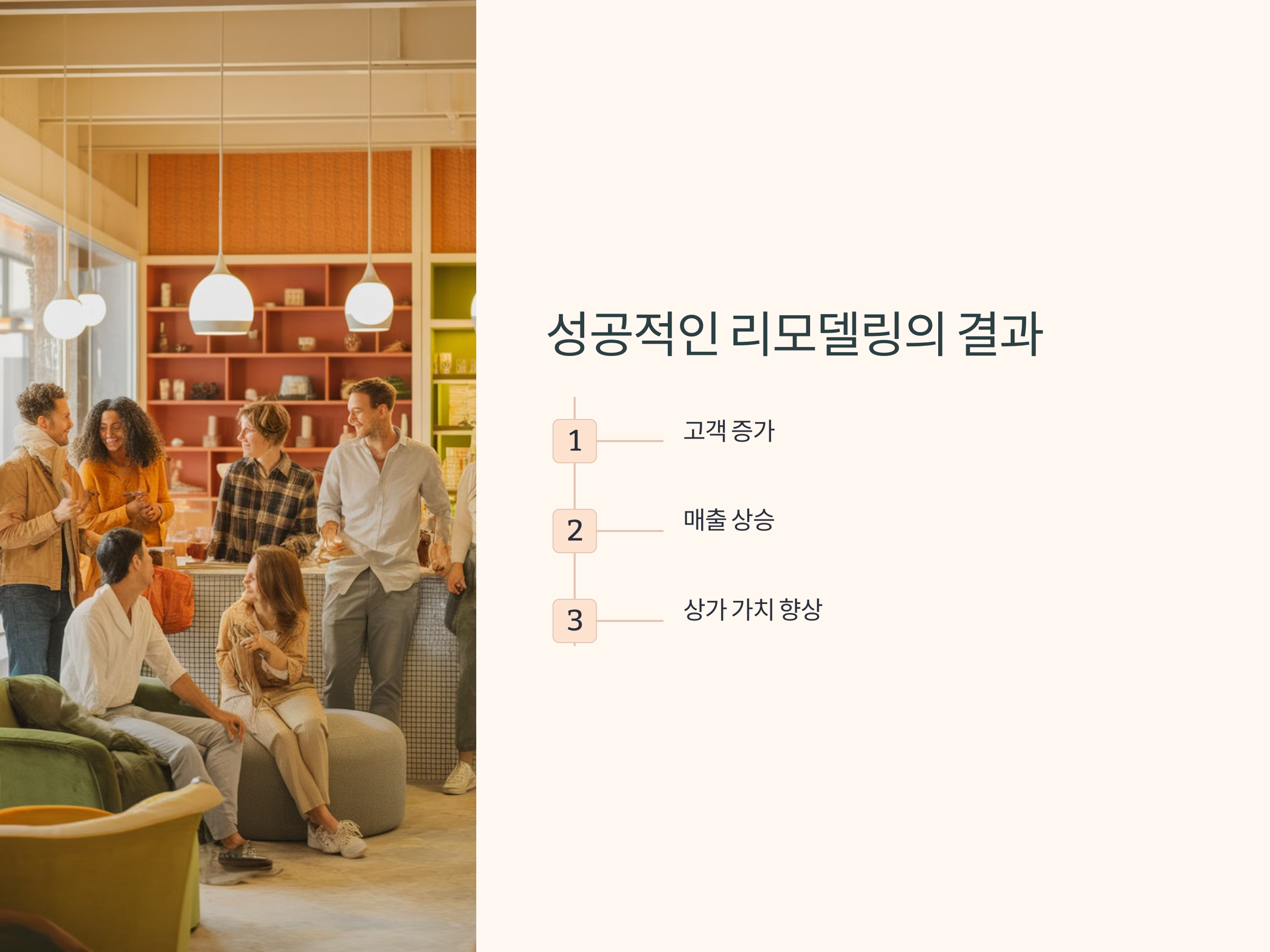 상가 리모델링은 단순한 공간 변화가 아닌, 비즈니스 성장의 중요한 기회입니다. 철수 후 리모델링을 통해 상가의 가치를 높이고, 새로운 고객층을 유치하는 데 도움이 될 수 있습니다. 전략적으로 접근하여, 성공적인 리모델링을 구현해 보세요.