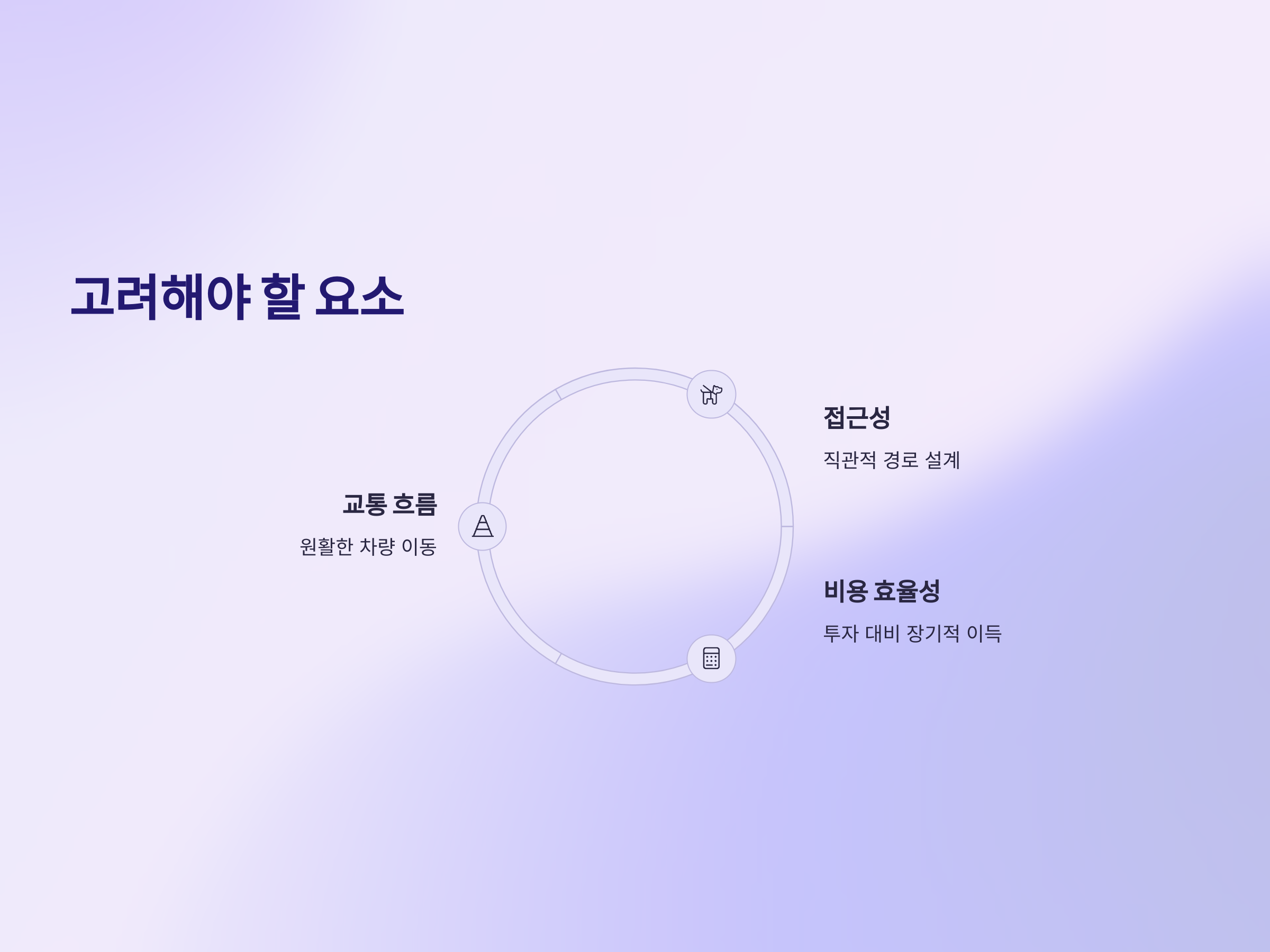 주차 공간이 아무리 많아도, 차량의 흐름이 원활하지 않으면 주차 공간을 이용하는 고객들의 만족도가 떨어집니다. 상가 주변의 도로 상황을 분석하고, 주차장 출입구와 도로와의 연결을 최적화해야 합니다. 또한, 고객이 쉽게 상가에 접근할 수 있도록 편리한 교차로 설계가 필요합니다.