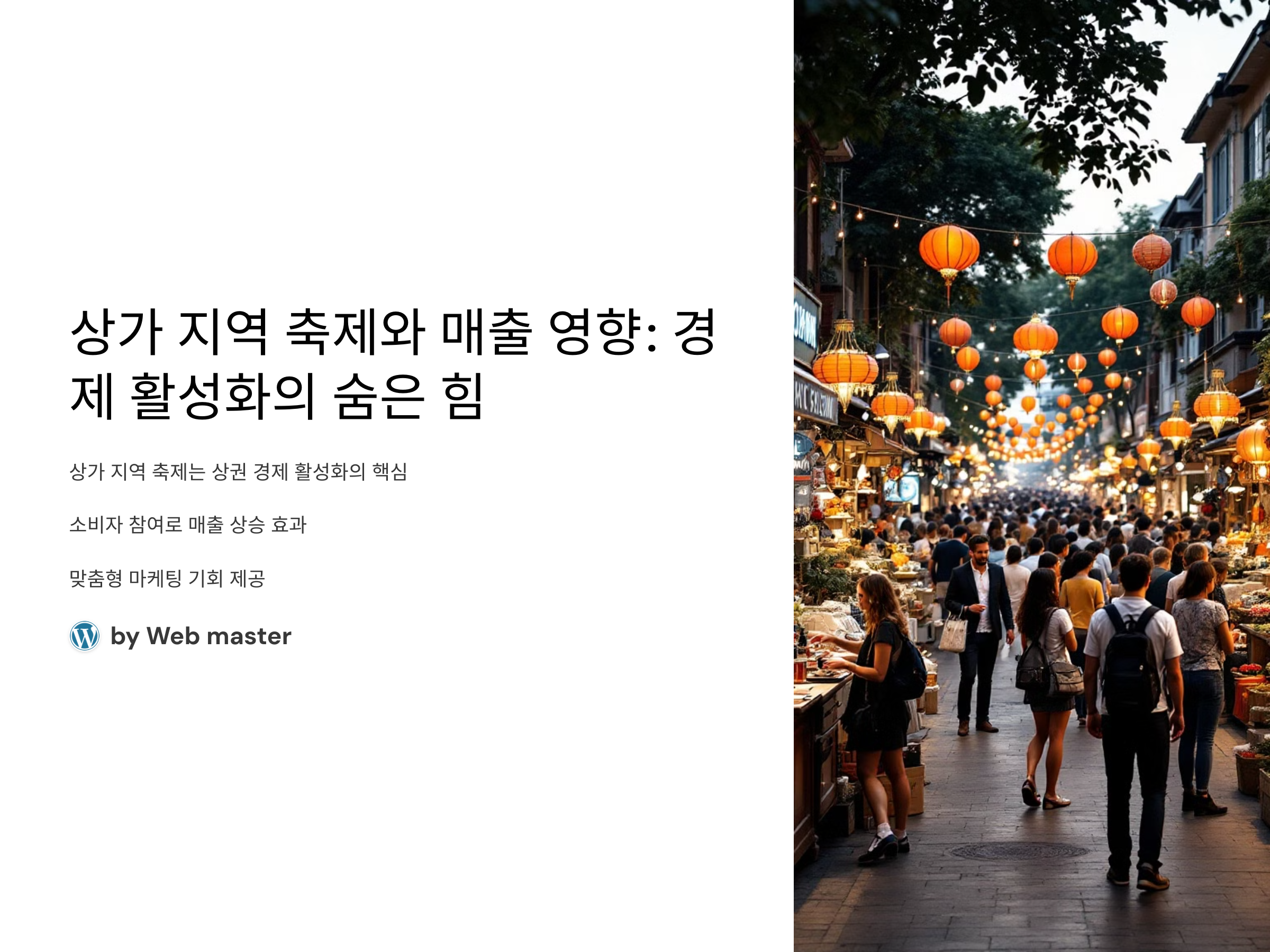 상가 지역 축제는 매출에 어떤 영향을 미칠까요? 첫째, 지역 축제는 지역 주민 및 외부 방문자들에게 큰 관심을 끌고, 이는 자연스럽게 상가들의 방문을 유도합니다. 축제 기간 동안 방문객 수가 급증하며, 그로 인해 상가들의 판매도 늘어납니다. 예를 들어, 음식, 의류, 기념품 등 다양한 품목의 판매가 증가하며 상가들의 매출이 크게 오릅니다.