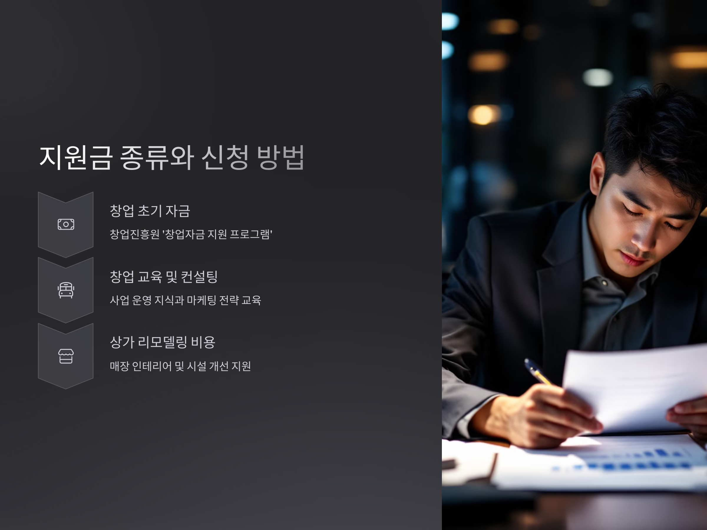 상가 창업의 자금은 대부분 대출이나 개인 자산으로 해결하는 경우가 많습니다. 하지만 정부지원금을 활용하면 이러한 자금 부담을 조금이나마 줄일 수 있습니다. 정부는 창업자들이 경제적인 부담을 덜고 안정적으로 사업을 시작할 수 있도록 다양한 프로그램을 마련해두었는데, 이러한 지원금 제도를 잘 활용하는 것이 중요합니다.