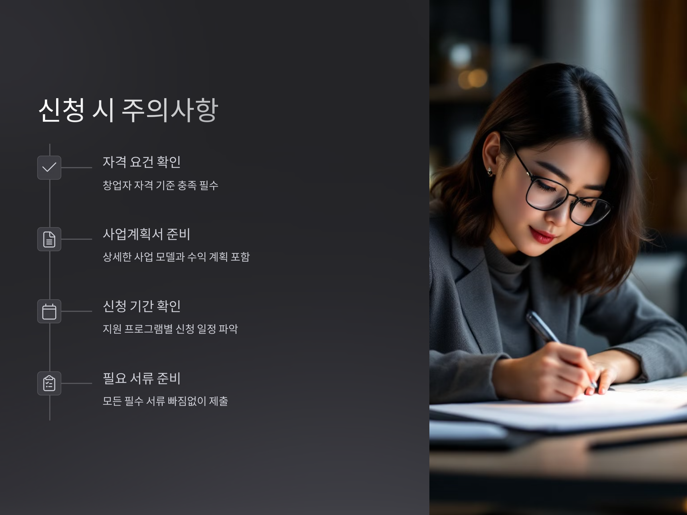 창업지원금을 신청할 때에는 반드시 주의해야 할 사항들이 존재합니다. 첫 번째로 중요한 점은 신청 자격 요건을 충족하는 것입니다. 정부가 제공하는 지원금은 창업자의 자격 요건을 기준으로 지원 대상이 결정되므로, 이를 정확히 파악하는 것이 중요합니다. 예를 들어, 창업자가 기존에 다른 사업을 운영한 경험이 없다면, 지원금 신청 자격이 제한될 수 있습니다.