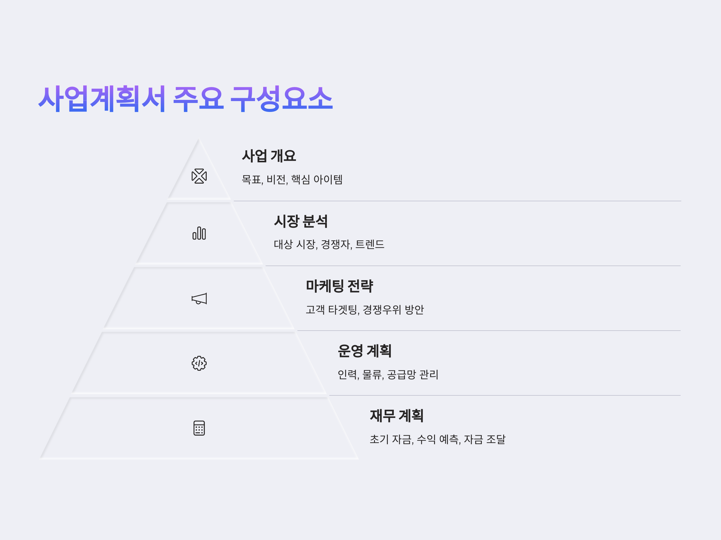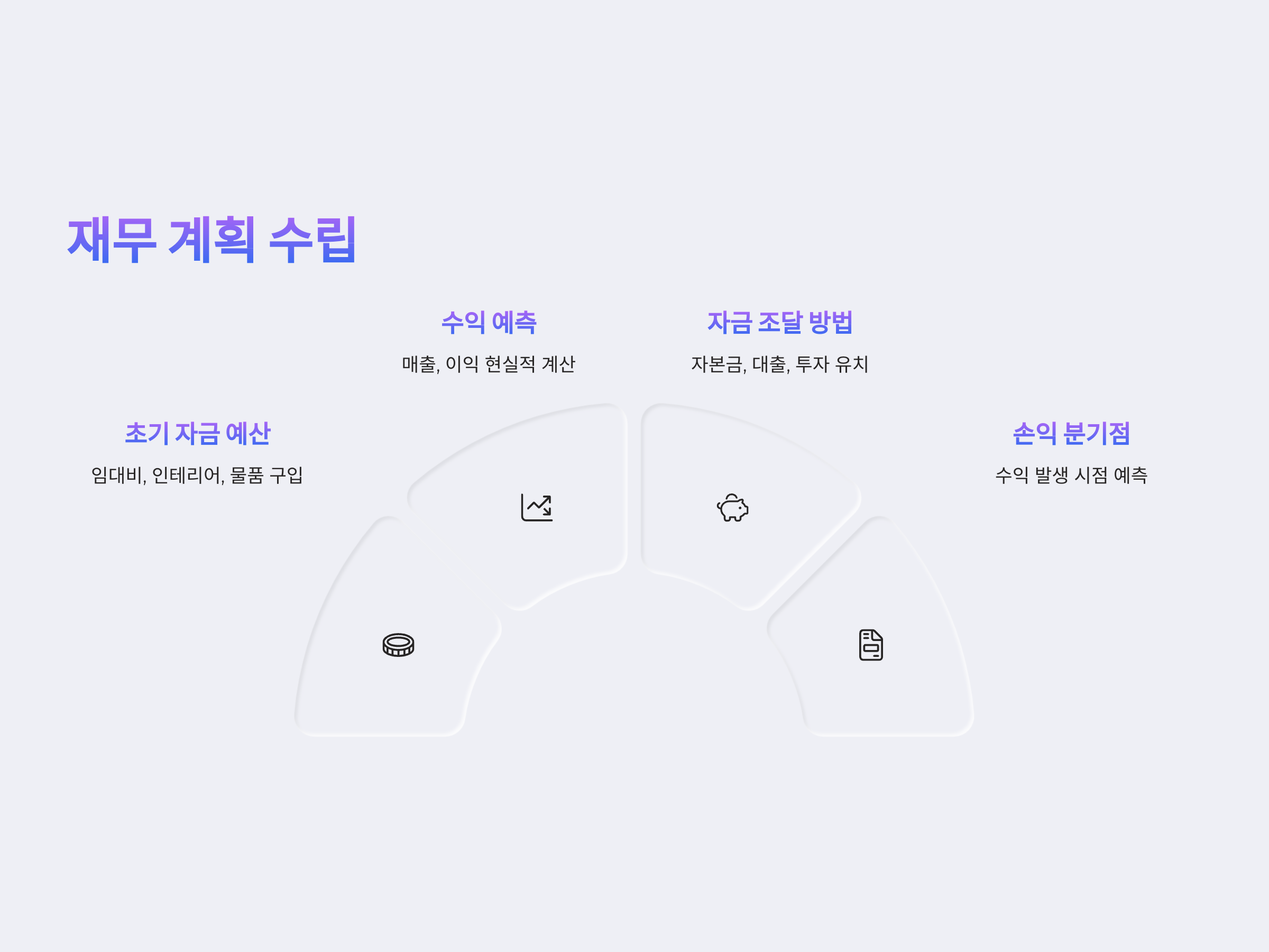 - 재무 계획: 초기 자금, 수익 예측, 자금 조달 방법 등을 포함하여 투자자들에게 신뢰를 줄 수 있는 재무 계획을 수립합니다.