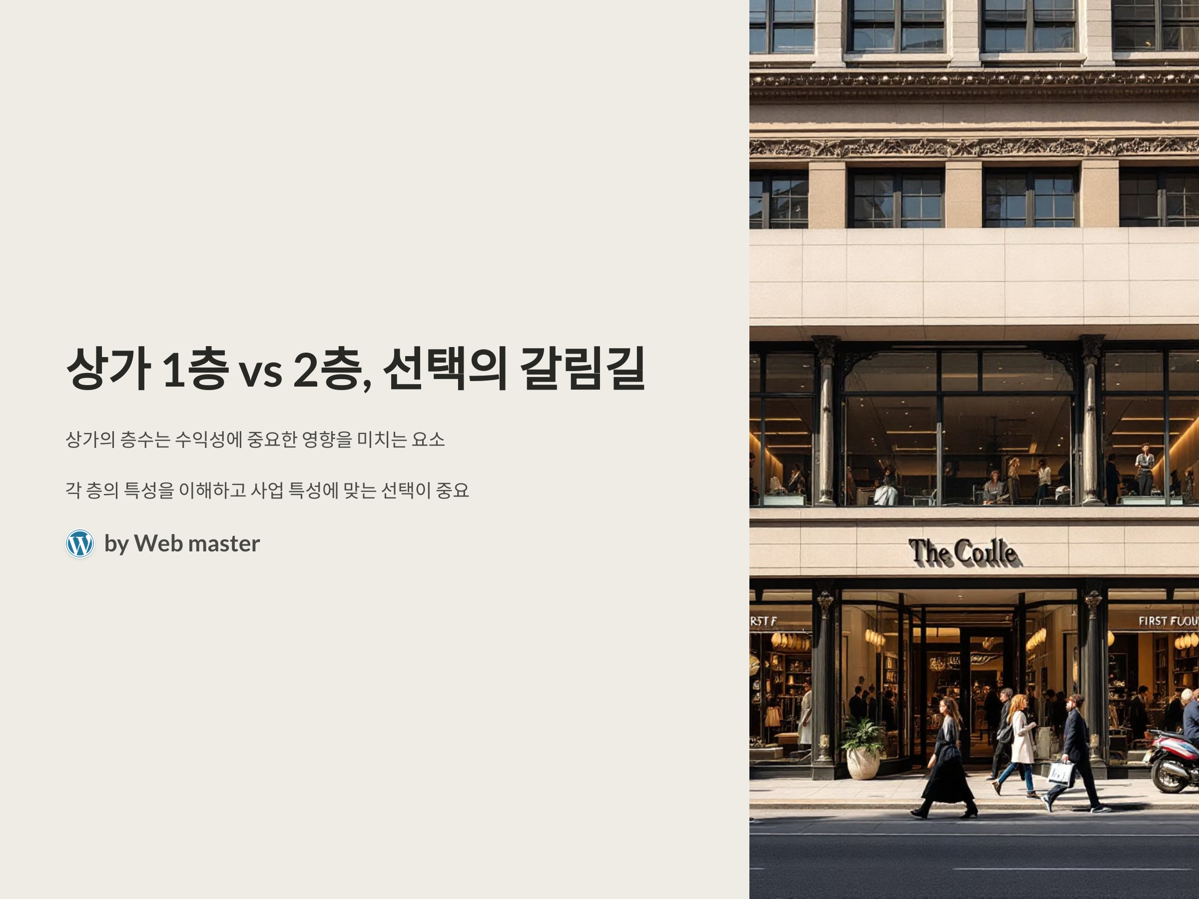 상가를 선택할 때 중요한 요소 중 하나는 바로 "층수"입니다. 상가의 1층과 2층은 각각의 특성에 따라 장단점이 분명하게 나뉩니다. 상가의 위치가 수익성에 중요한 영향을 미친다는 점에서, 층수에 따른 특성을 제대로 이해하고 선택하는 것이 매우 중요합니다. 그럼 1층과 2층 상가의 장단점을 비교해 보겠습니다.
