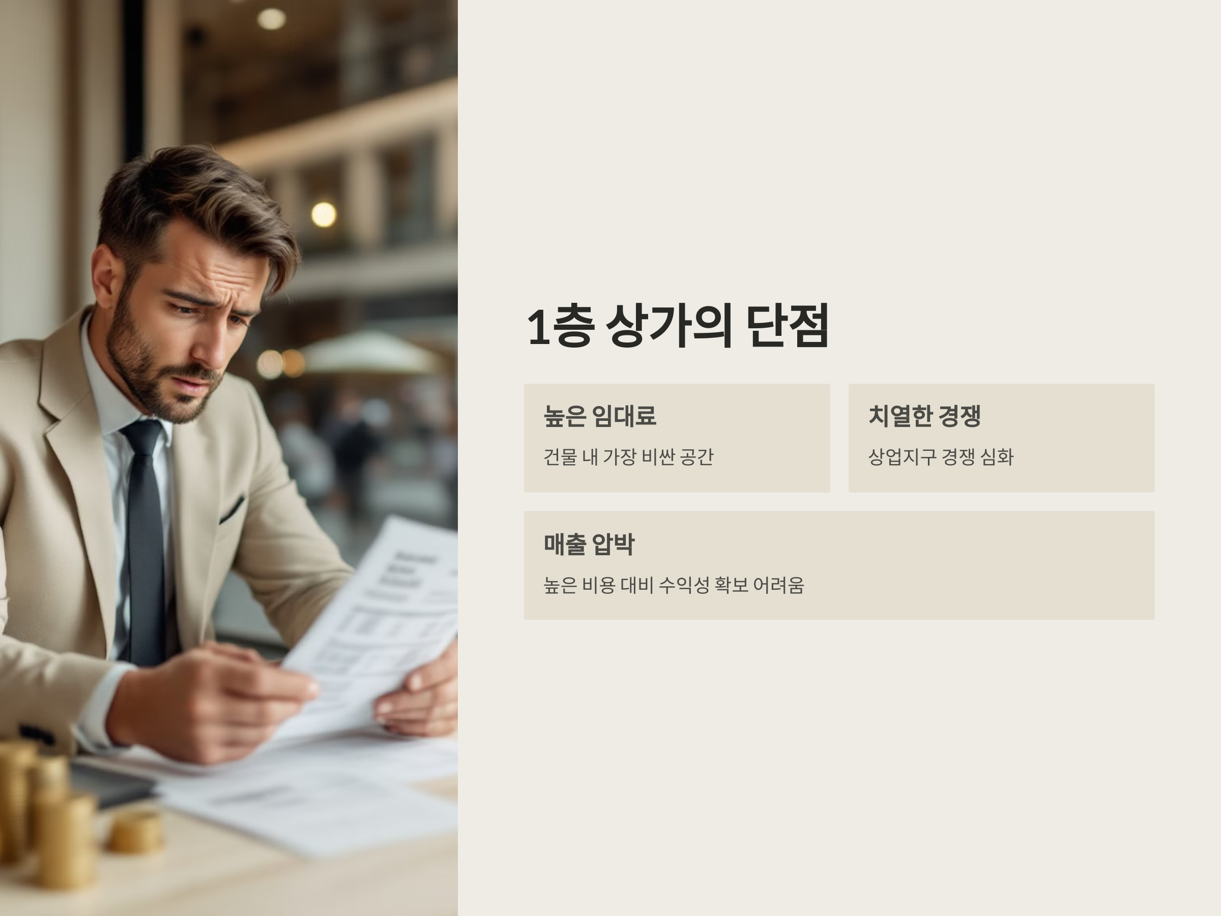 하지만 1층 상가는 치명적인 단점도 있습니다. 바로 "높은 임대료"입니다. 대부분 1층 상가는 건물 내에서 가장 비싼 임대료를 부과합니다. 특히 상업지구의 경우, 임대료가 높은 만큼 경쟁이 치열하여 매출을 올리기 어려울 수 있습니다.