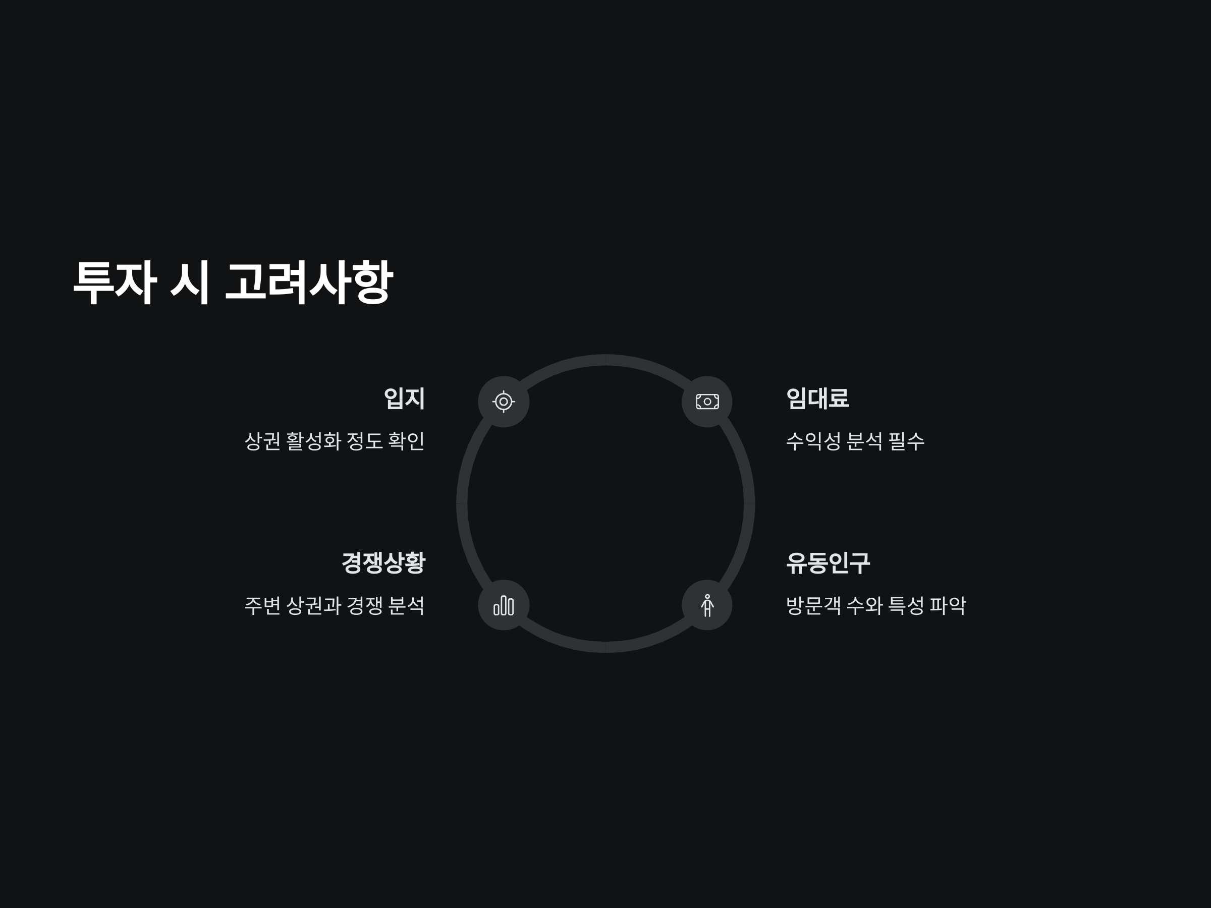 상가 투자 시에는 입지, 상권의 활성화 정도, 임대료 수준 등을 고려해야 합니다. 또한, 공실 리스크를 최소화할 수 있는 방법도 미리 준비하는 것이 좋습니