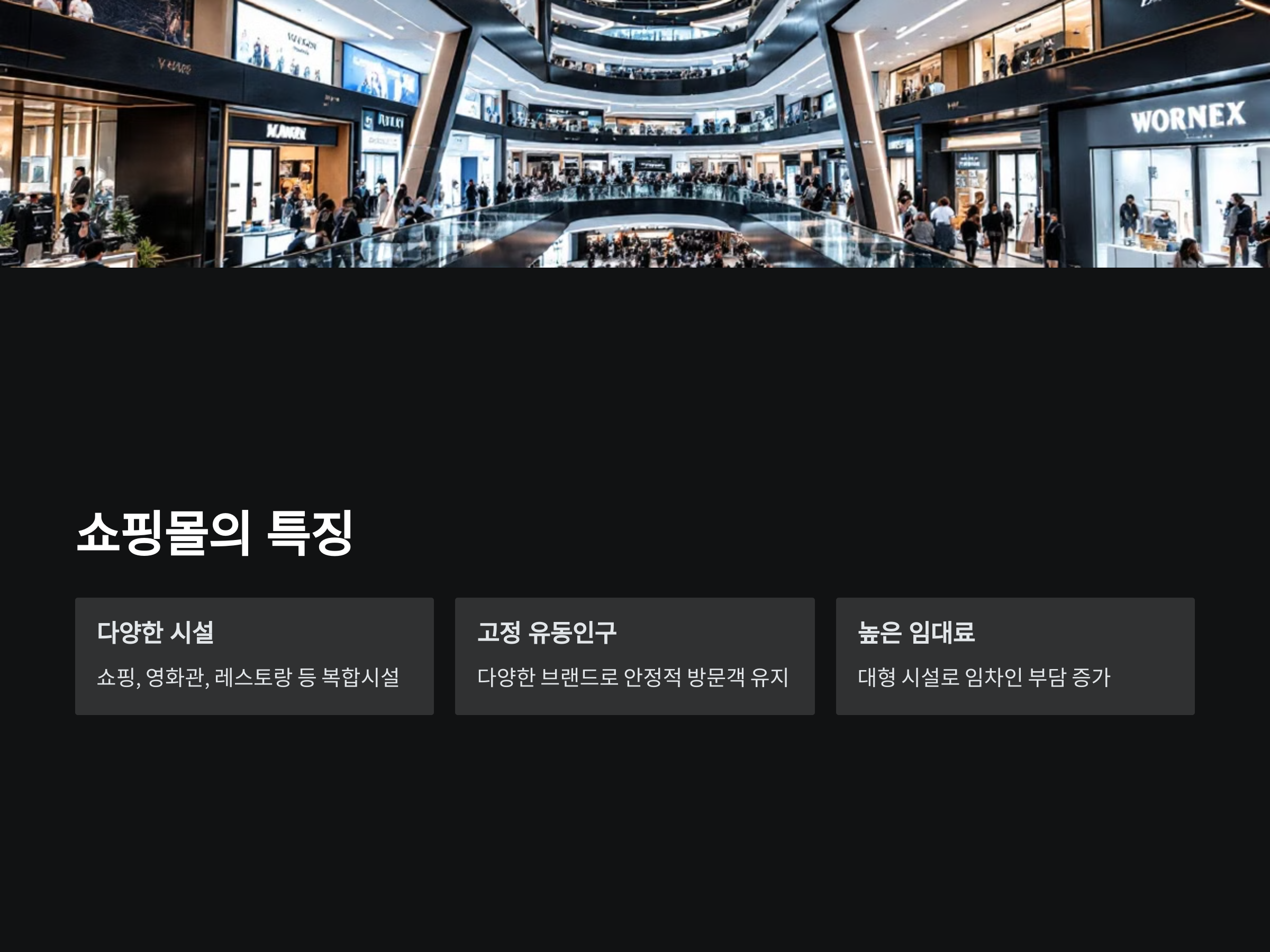 - 고정된 유동 인구: 쇼핑몰 내에 다양한 브랜드가 상주하고 있어 일정한 유동 인구를 유지할 수 있습니다.