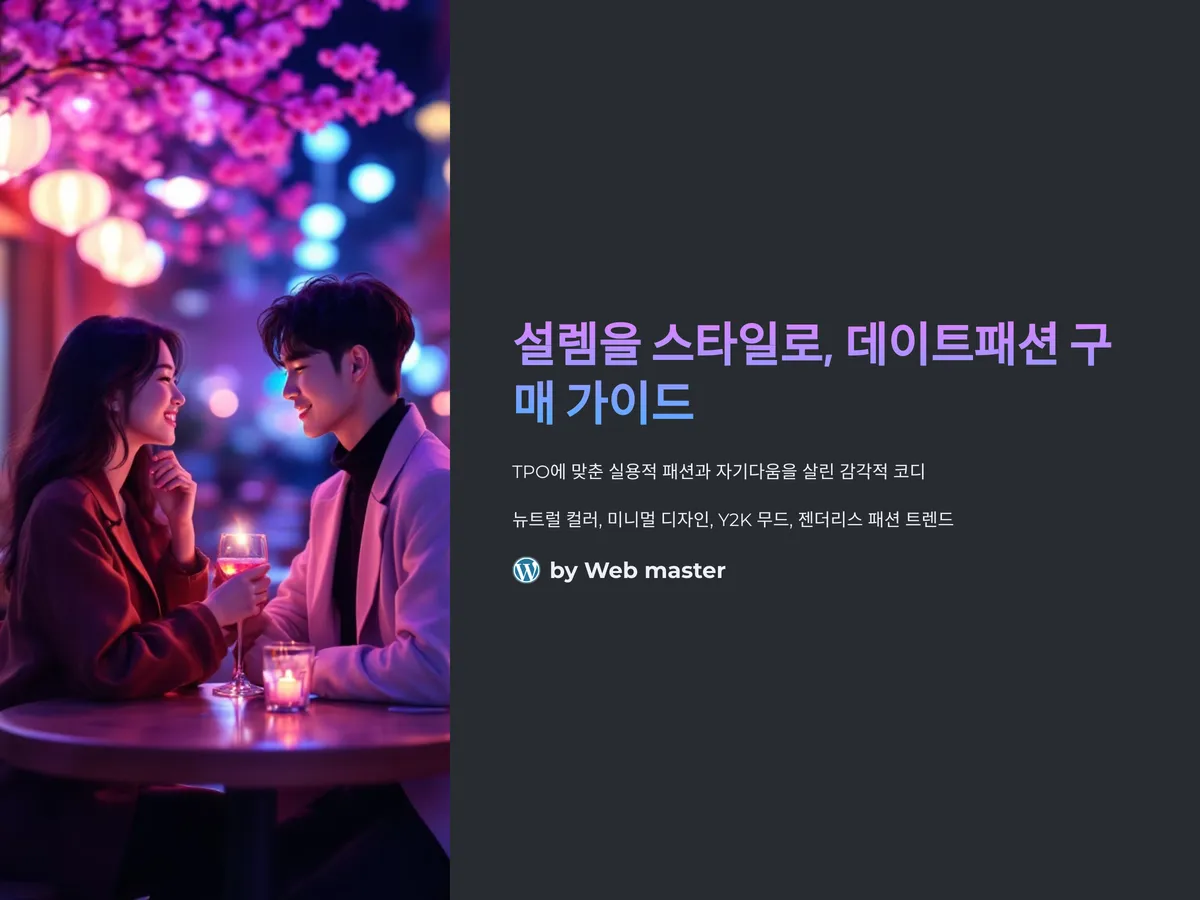 계절이 바뀔 때마다 고민되는 데이트룩, 어떻게 입어야 할지 몰라서 매번 실패하셨나요? 최근 소비 트렌드는 ‘TPO(시간, 장소, 상황)’에 맞춘 실용적인 패션과 ‘자기다움’을 살릴 수 있는 감각적인 코디가 주목받고 있습니다. 특히 SNS 노출을 고려한 스타일링이 필수가 되며, 데이트 패션 역시 기능성과 감성을 겸비한 아이템이 인기를 끌고 있습니다. 2025년 봄 기준으로는 뉴트럴 컬러와 미니멀 디자인, 그리고 약간의 Y2K 무드를 가미한 아이템이 많은 관심을 받고 있으며, 성별을 초월한 젠더리스 패션도 데이트룩 선택에서 빼놓을 수 없는 요소입니다. 이번 가이드에서는 데이트 장소에 따른 착장 포인트부터 꼭 챙겨야 할 아이템, 실패 없는 구매 노하우까지 알차게 정리해드립니다.