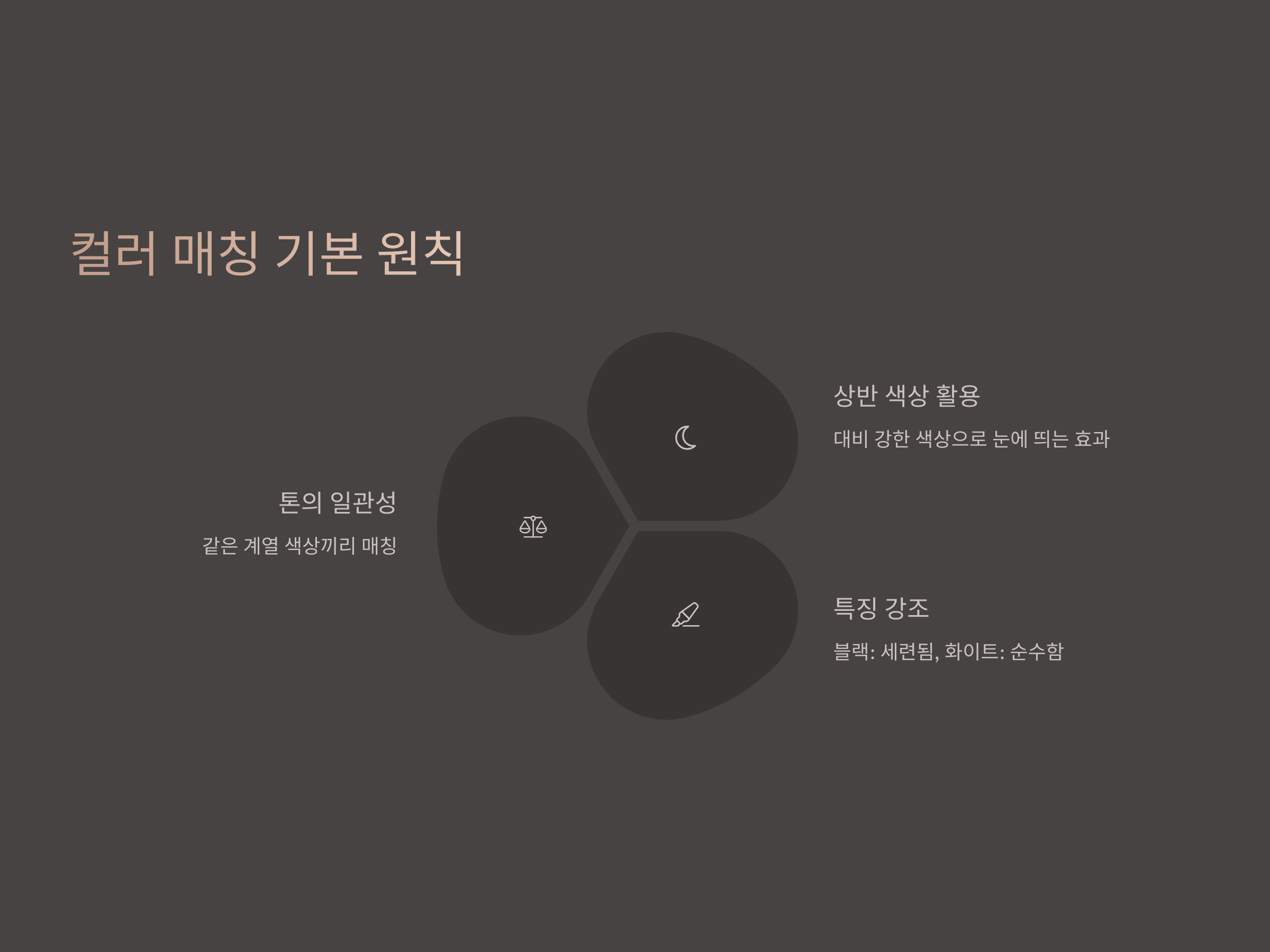 이러한 색상 선택은 그들이 표현하려는 이미지와 브랜드를 고려한 선택이기 때문에, 이를 본받아 자신만의 색상 매칭을 시도할 수 있습니다.