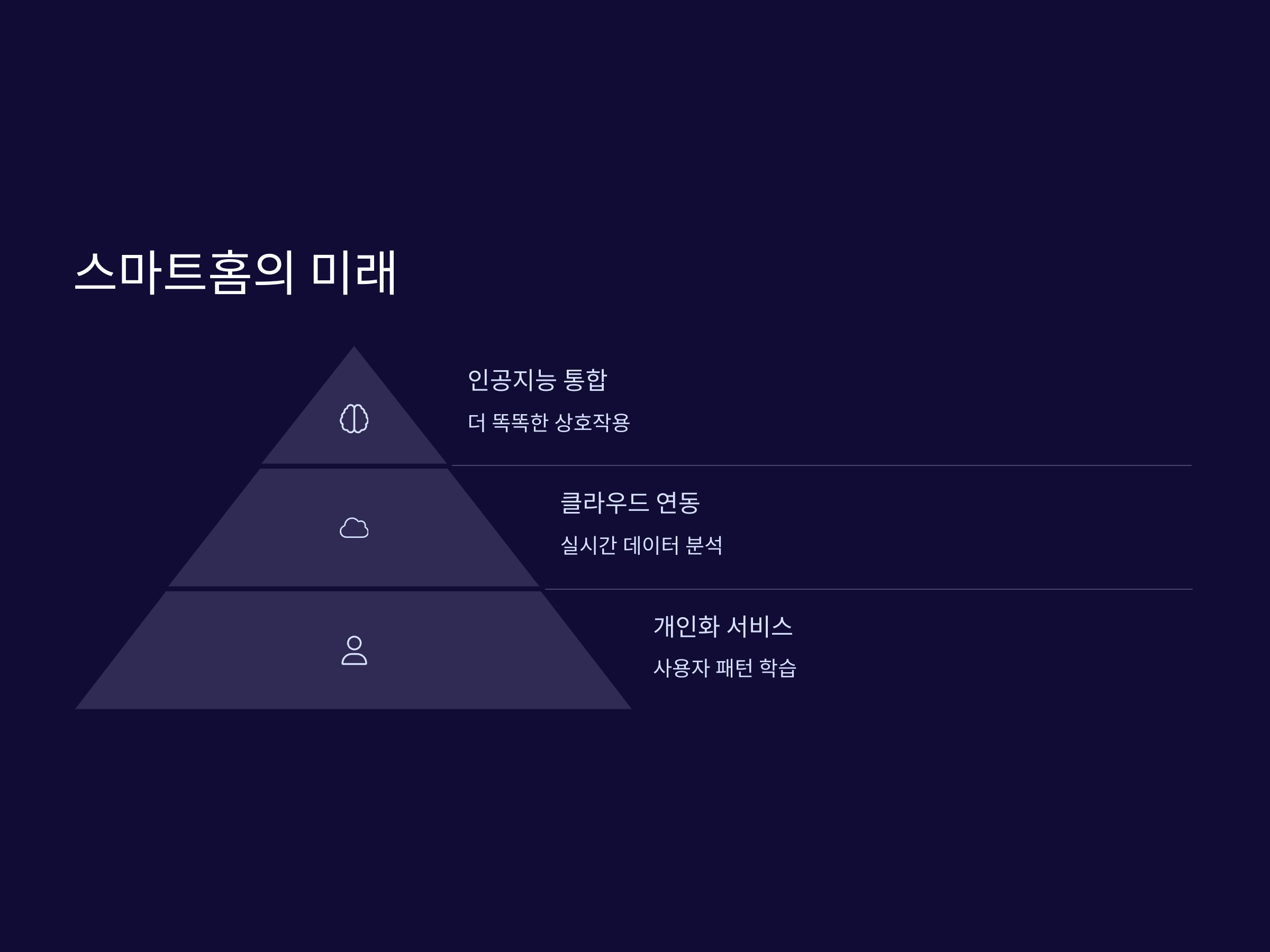 미래의 스마트홈 인테리어는 더욱 개인화되고, 사용자의 취향에 맞춰진 환경을 제공할 것입니다. 예를 들어, 스마트홈 시스템이 사용자의 행동 패턴을 학습하여, 온도, 조명, 보안 시스템 등을 자동으로 조절하고, 스마트 기기가 서로 협력하여 집안의 모든 요소를 최적화하는 방식이 될 것입니다.