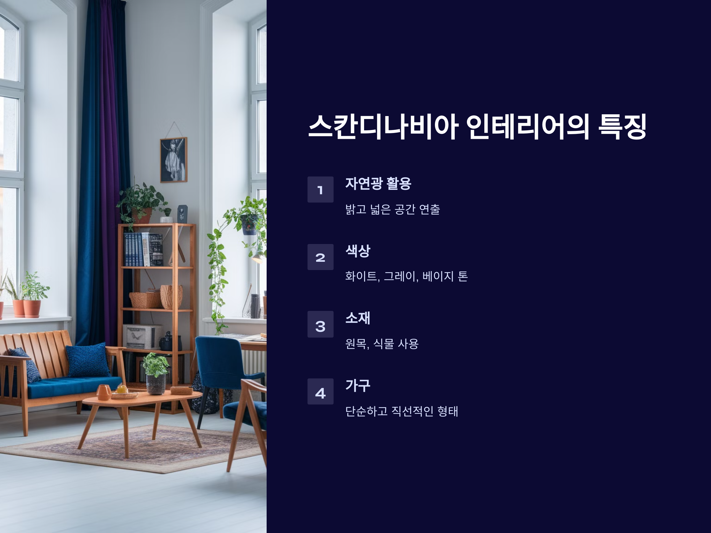 스칸디나비아 인테리어는 단순히 디자인적인 요소뿐만 아니라, 자연과 기능성을 중시하는 라이프스타일의 일환입니다. 집안에서 편안하고 아늑한 분위기를 만들고 싶다면, 이 스타일을 적용하는 것이 좋은 선택이 될 것입니다. 실용적이면서도 따뜻하고 세련된 분위기를 연출할 수 있는 스칸디나비아 인테리어로, 보다 쾌적한 공간을 만들어보세요.