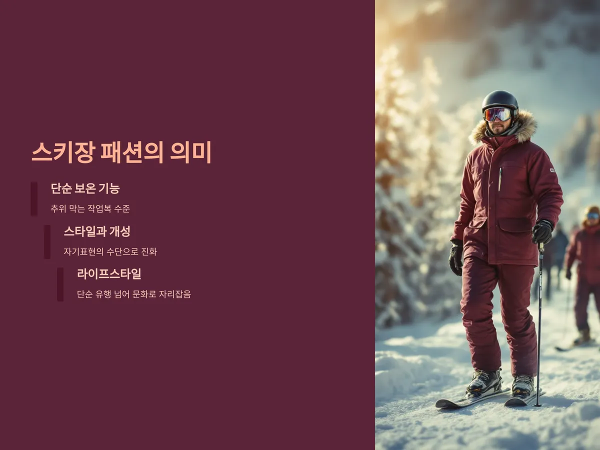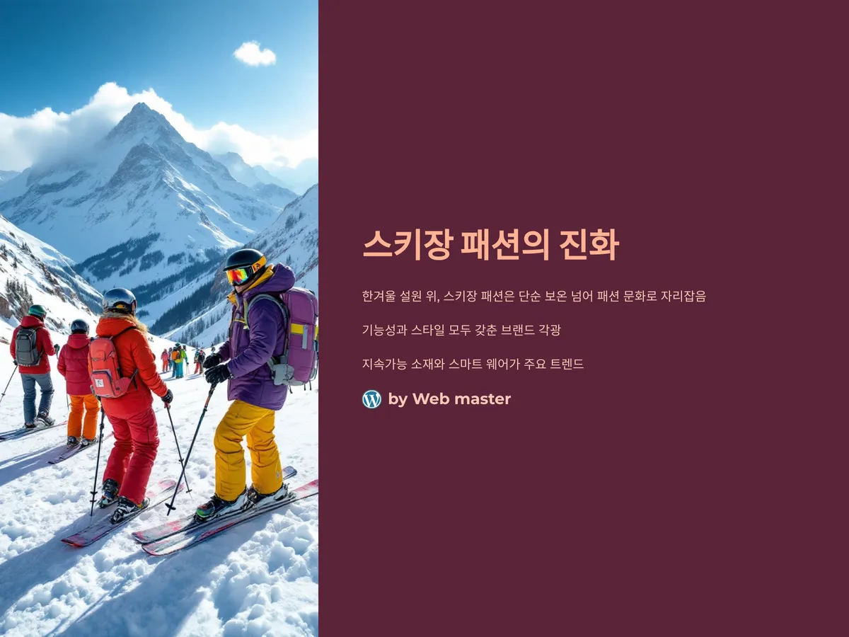 한겨울 눈 덮인 설원 위, 스키장을 수놓는 사람들의 옷차림은 단순한 보온을 넘어 하나의 패션 문화로 자리 잡았습니다. 이제는 스키장에서도 스타일과 개성이 중요해지면서, 과거의 투박했던 스키복에서부터 오늘날의 하이테크 패션까지 그 변화는 놀라울 정도입니다. 2025년 기준, 기능성과 스타일을 모두 잡은 스키복 브랜드가 각광을 받으며 지속가능한 소재와 스마트 웨어가 주요 트렌드로 부상하고 있습니다.