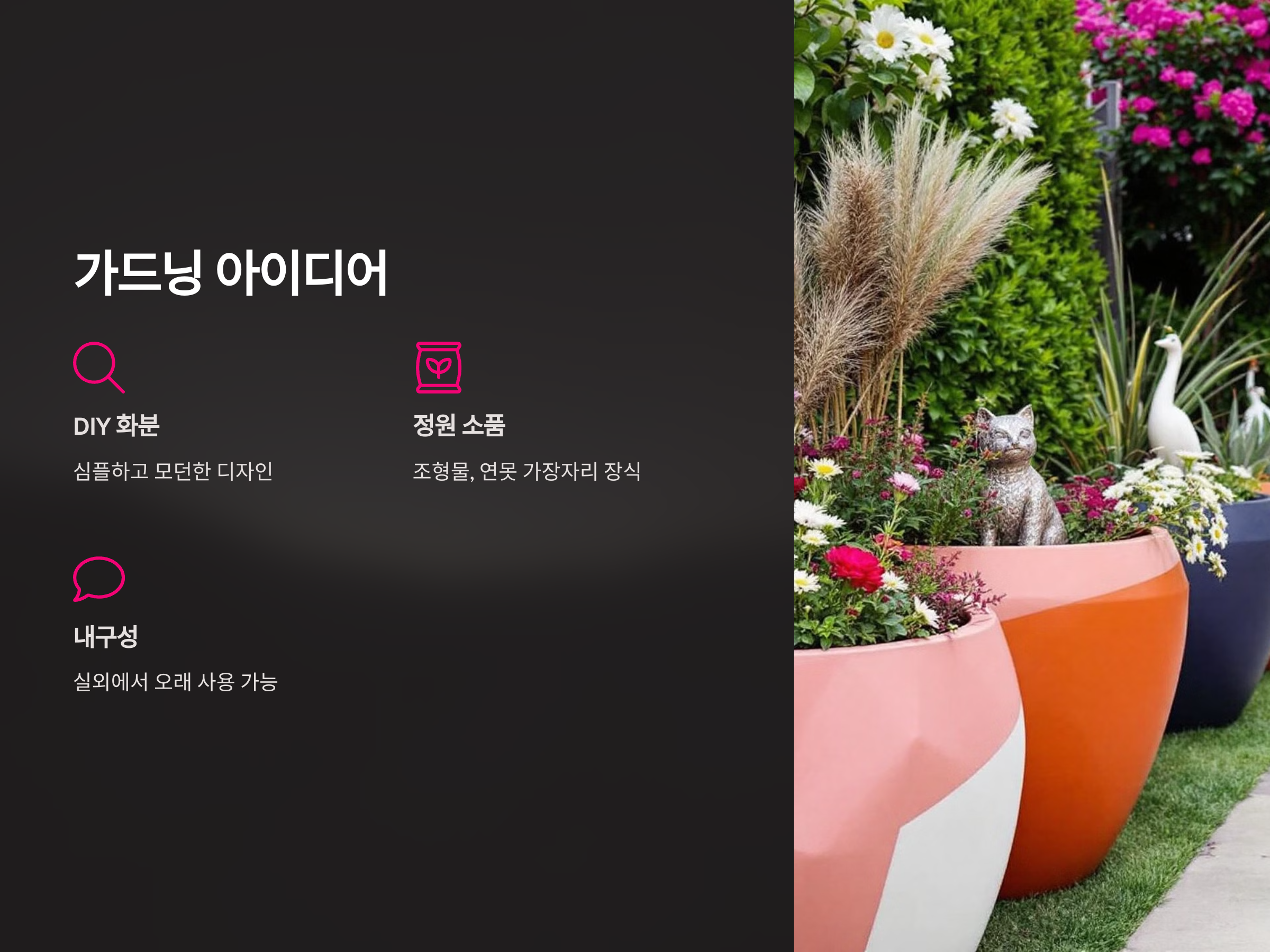 - 화분에 적합한 식물을 심어 완성합니다.