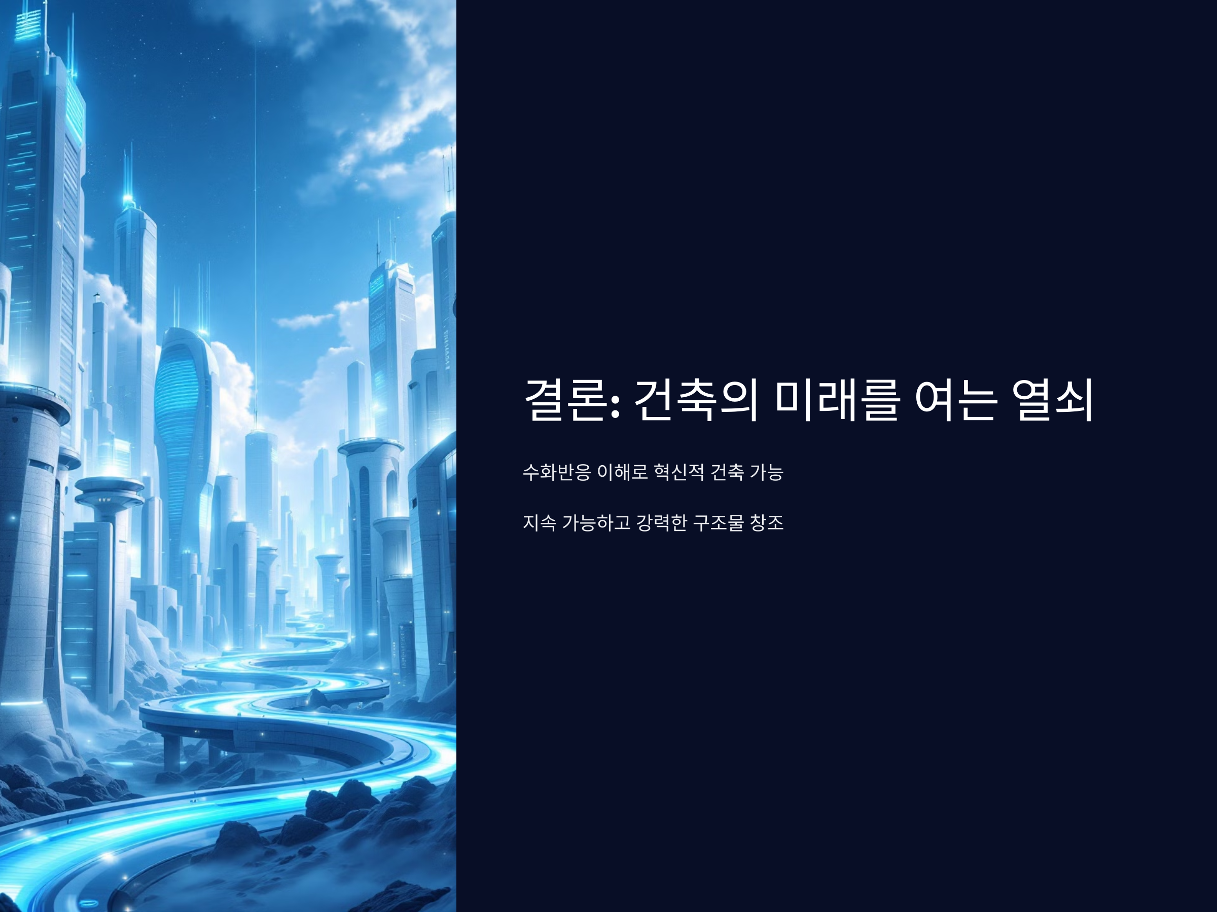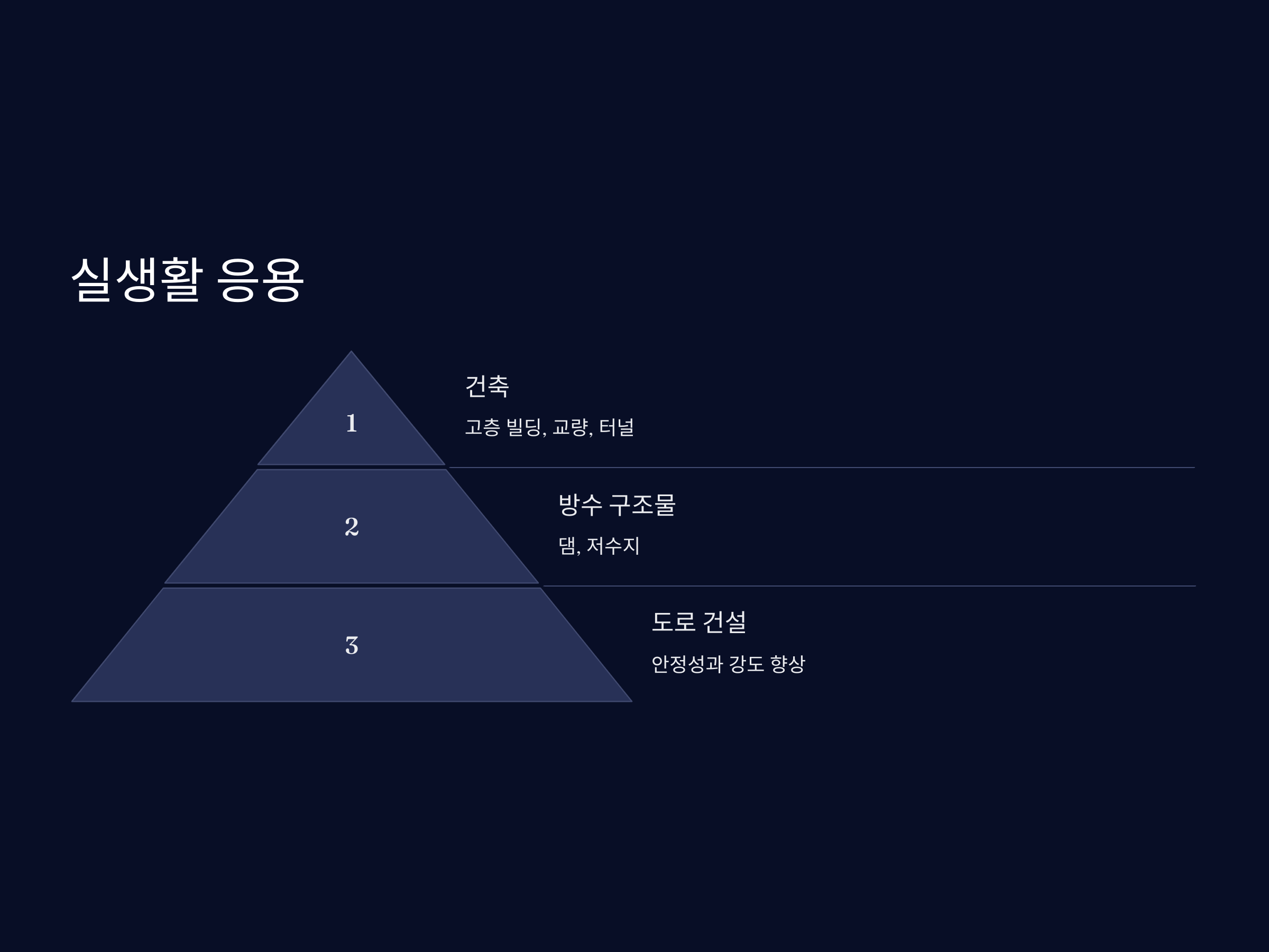 수화반응은 콘크리트의 강도와 내구성을 결정하므로 고층 빌딩, 교량, 터널 등에 중요한 역할을 합니다.