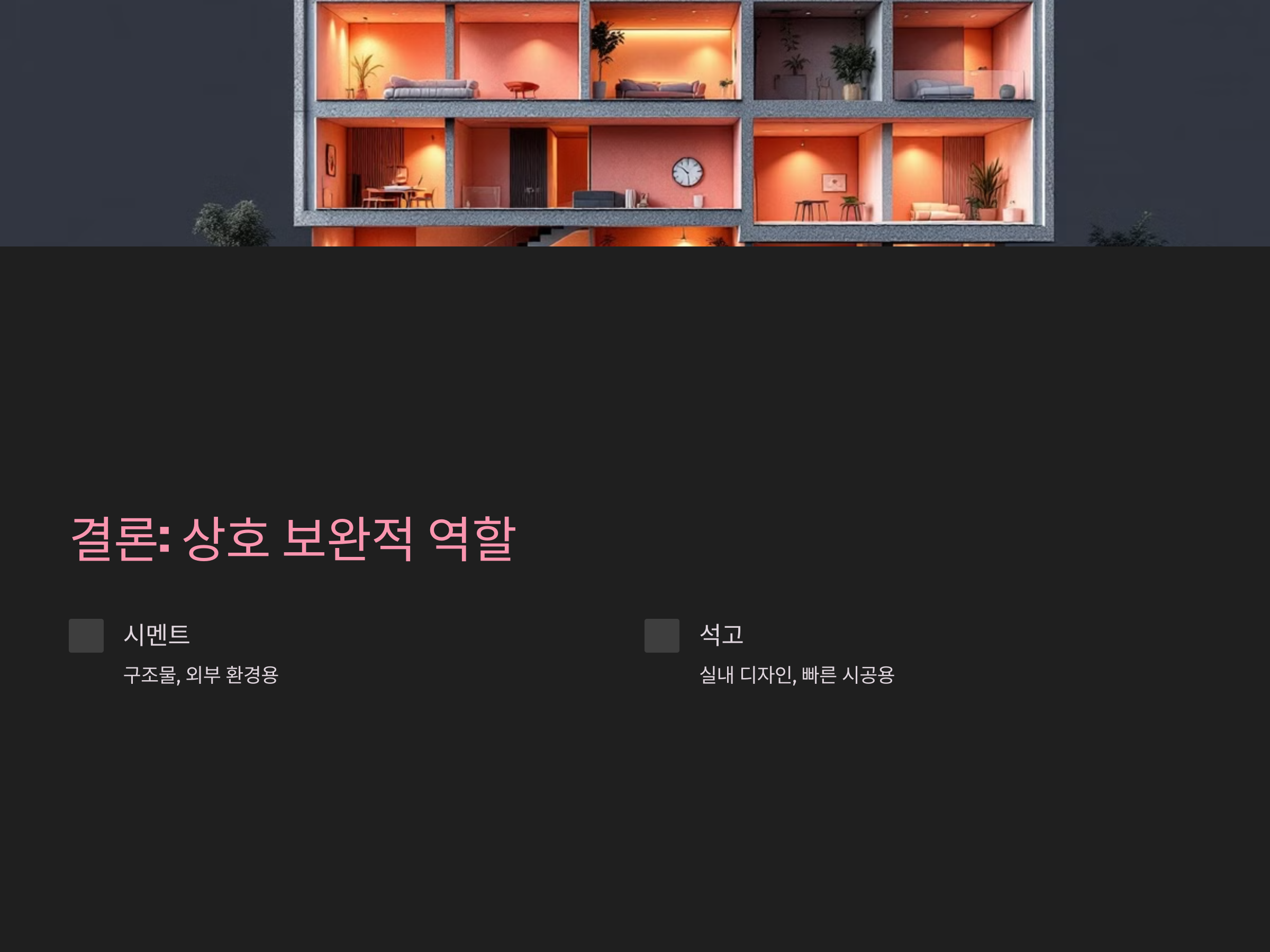 결론적으로, 두 자재는 상호 보완적인 역할을 하며, 용도에 따라 적절히 선택하는 것이 중요하다.