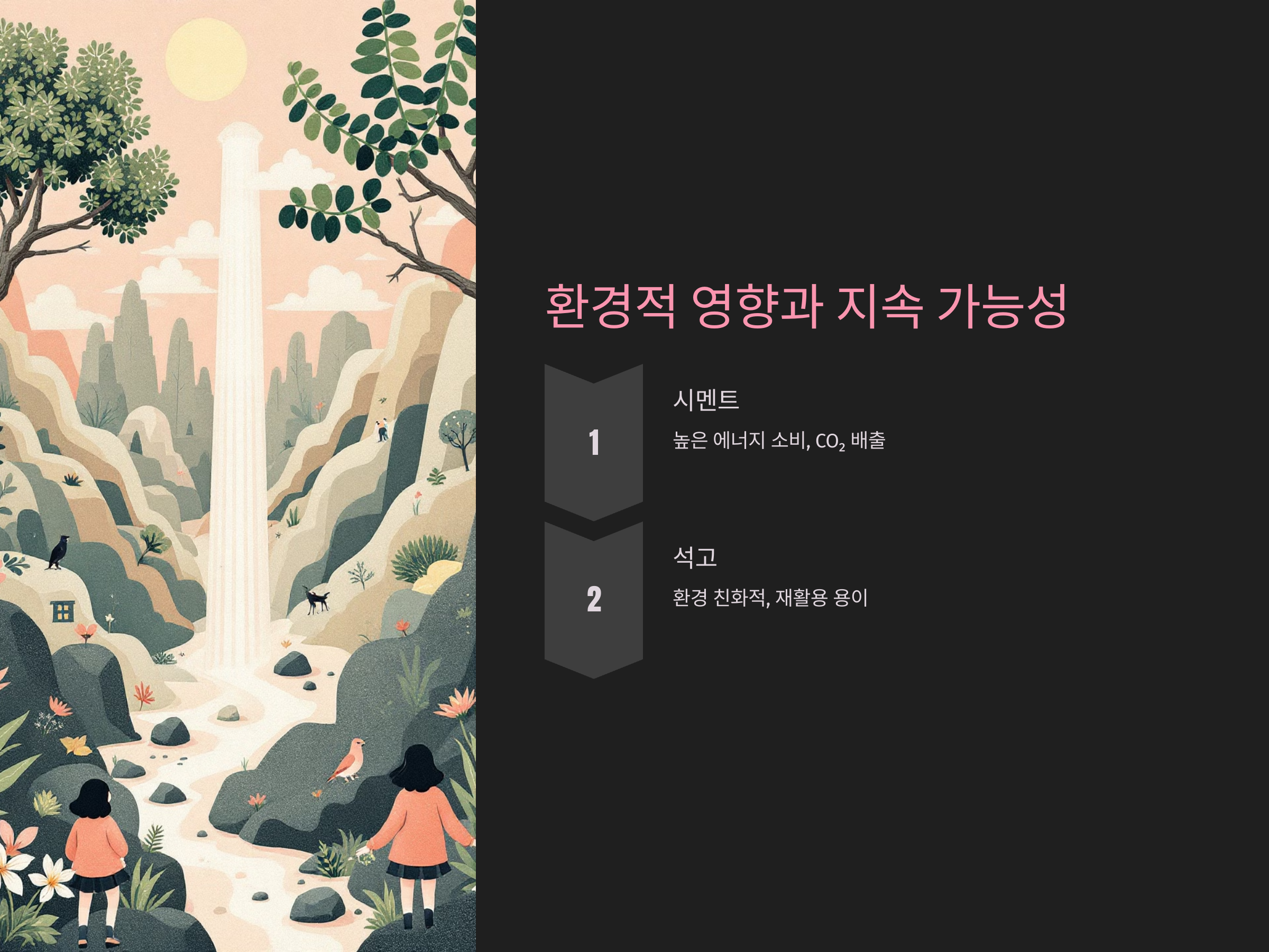 - 제조 과정에서 많은 에너지가 소모되고 CO₂ 배출이 많다.