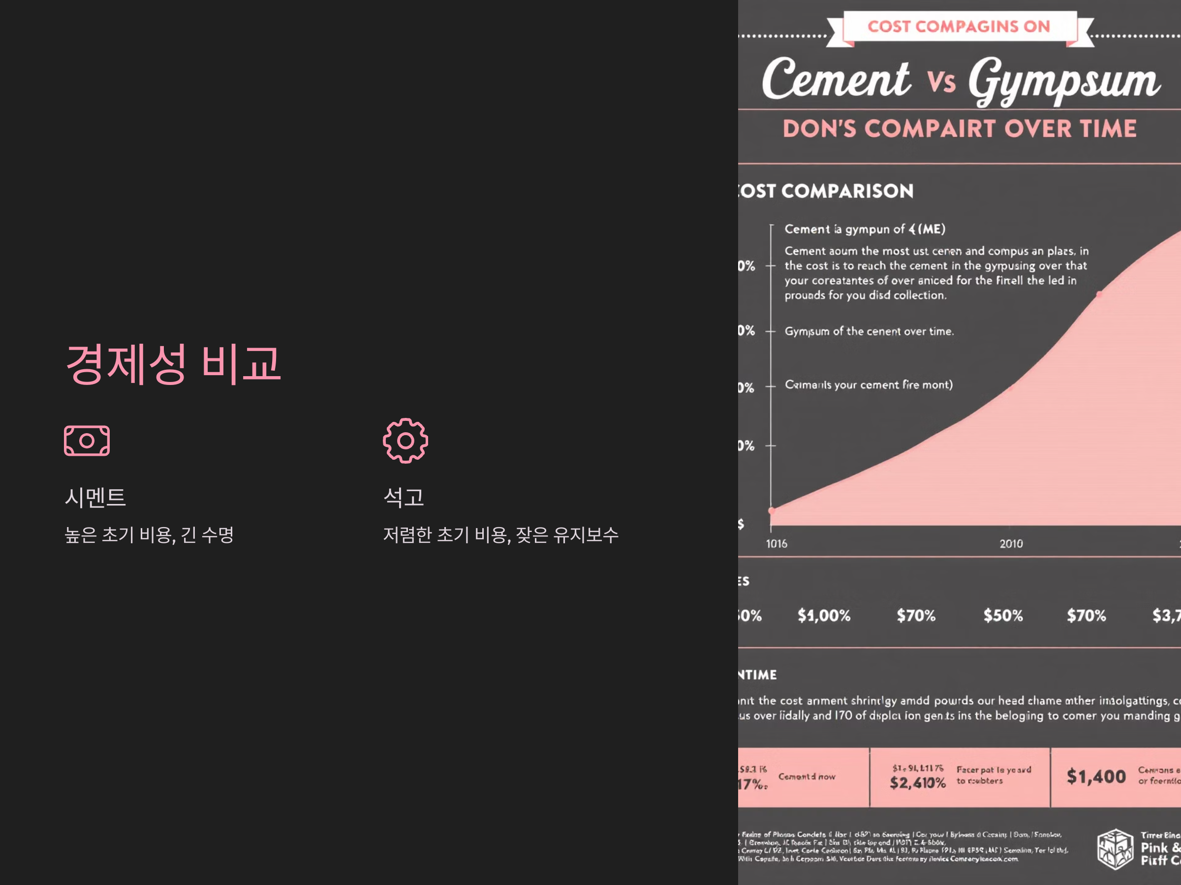 초기 비용은 석고에 비해 비싸지만, 긴 수명을 감안하면 경제적이다. 유지보수가 적게 들고 재활용 가능성이 높다.