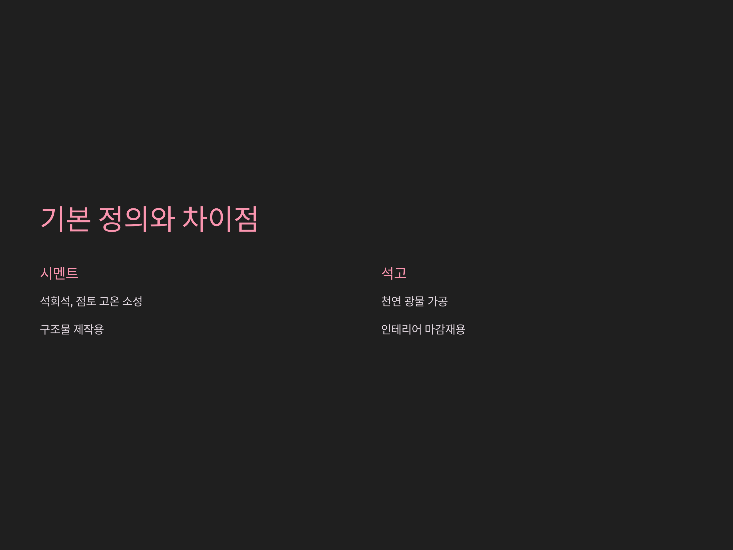 시멘트와 석고는 모두 건축 자재로 사용되지만, 본질적으로 성분과 특성이 다르다.