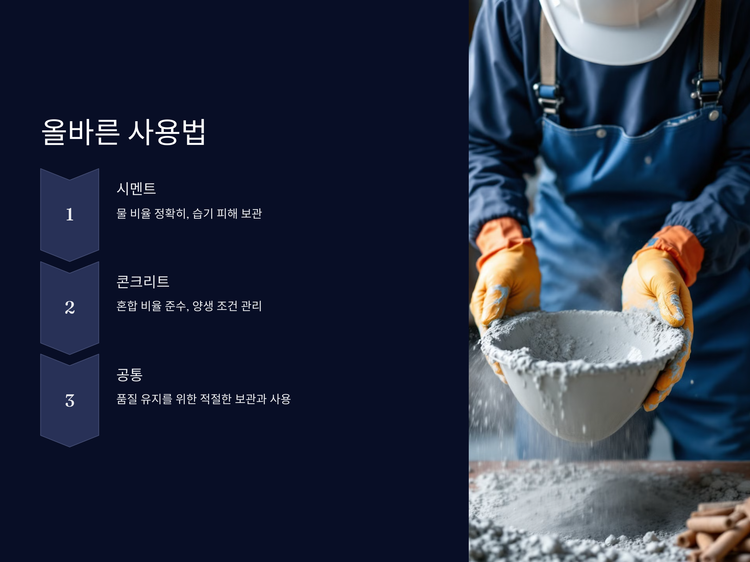 - 다양한 용도: 콘크리트, 모르타르, 접합재 등으로 활용됩니다.