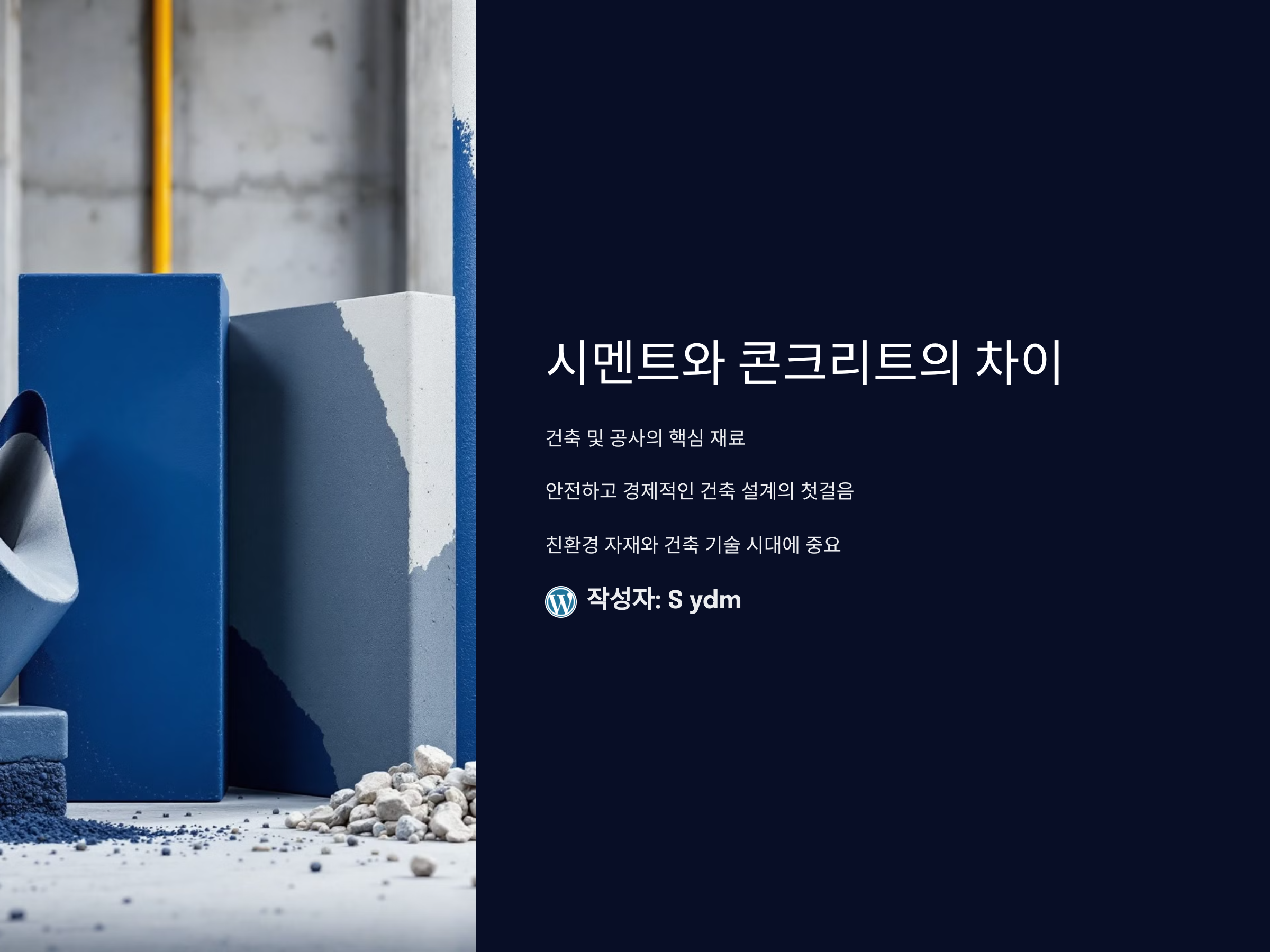시멘트와 콘크리트는 건축의 기본 재료이지만, 그 차이를 명확히 이해하는 것은 구조물의 품질과 안전을 결정짓는 중요한 요소입니다. 목적에 따라 적합한 재료를 선택하고 올바르게 사용한다면, 더욱 경제적이고 내구성 높은 건축물을 완성할 수 있습니다.