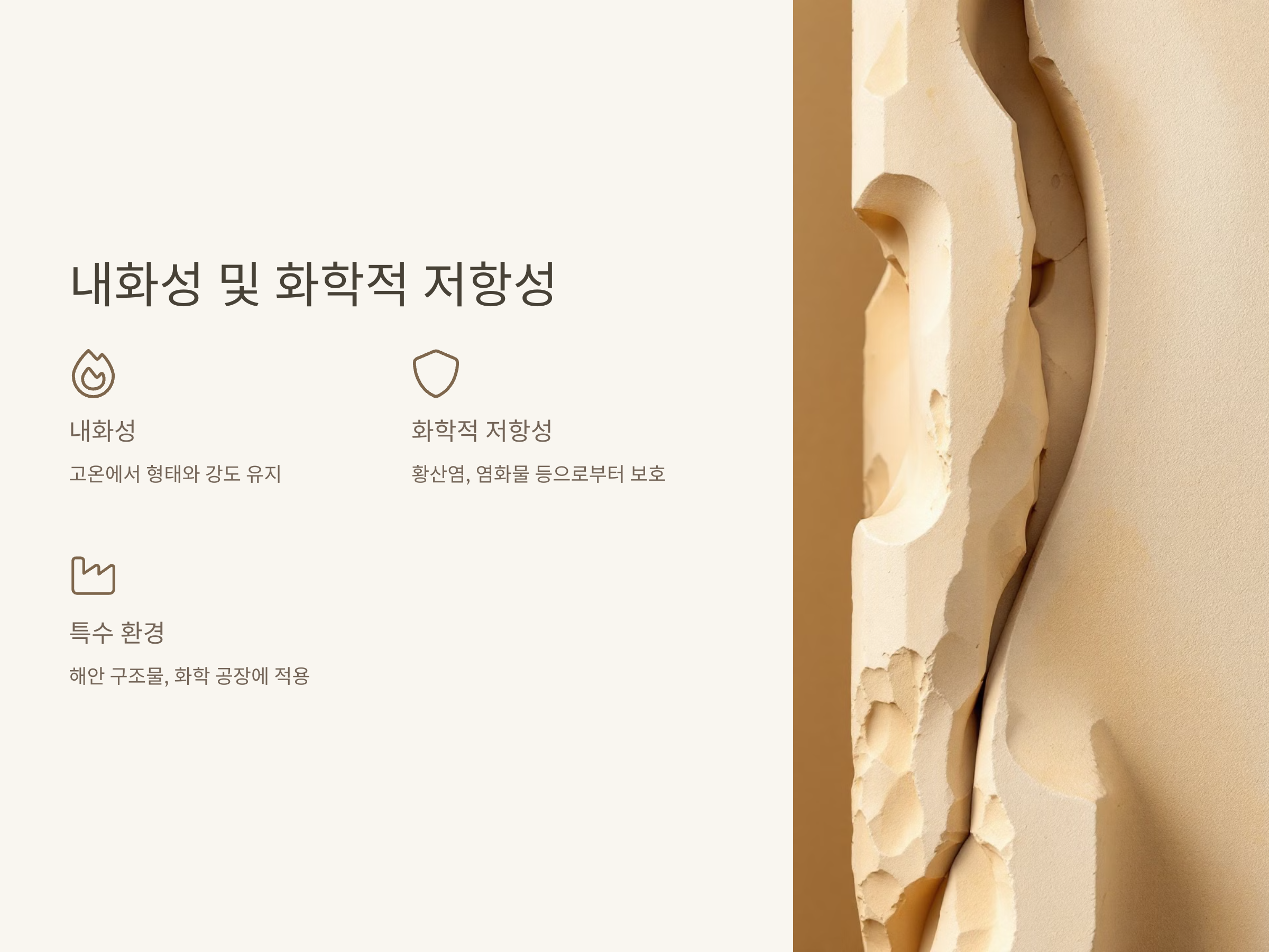 이러한 특성은 해안 구조물이나 화학 공장과 같은 특수 환경에서 요구됩니다.