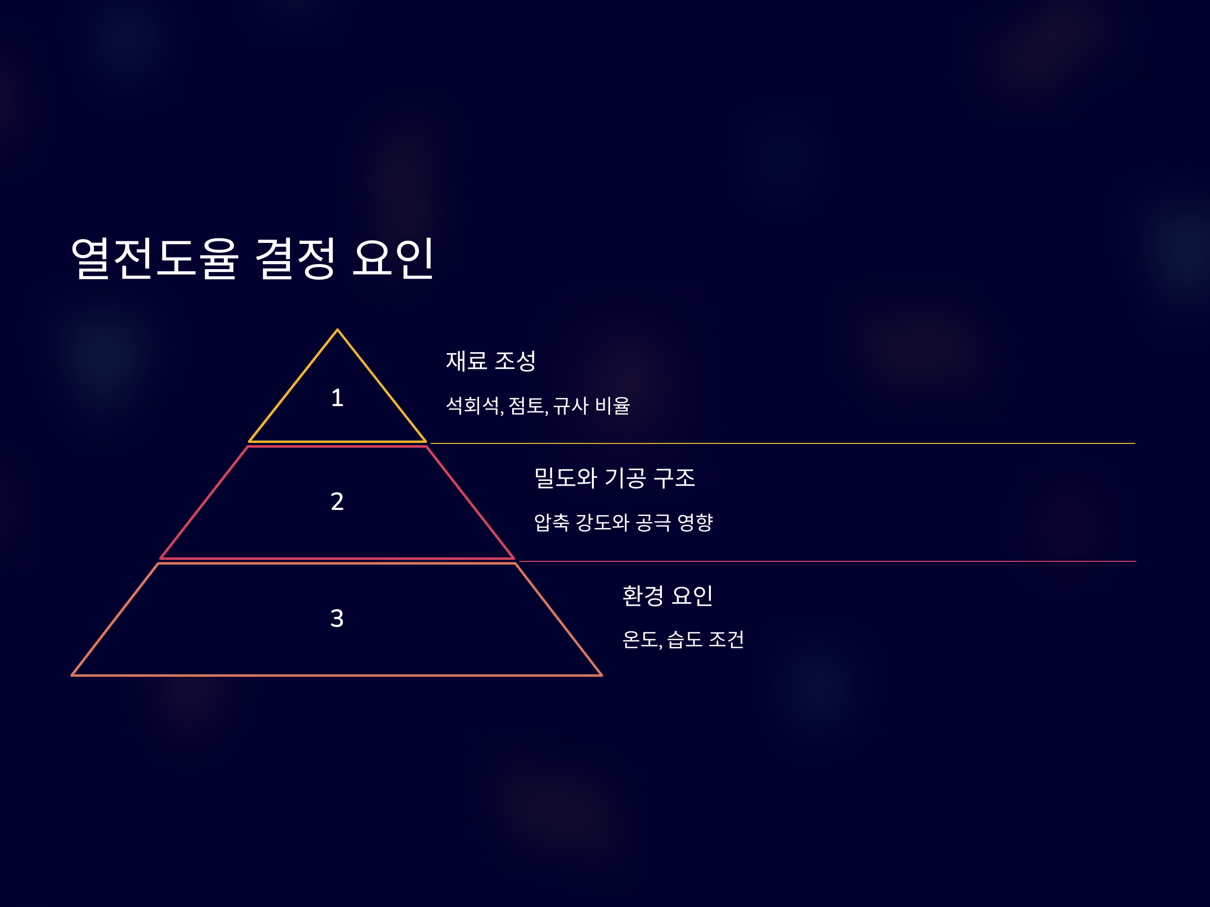 - 석회석 함량이 높으면 열전도율이 증가합니다.