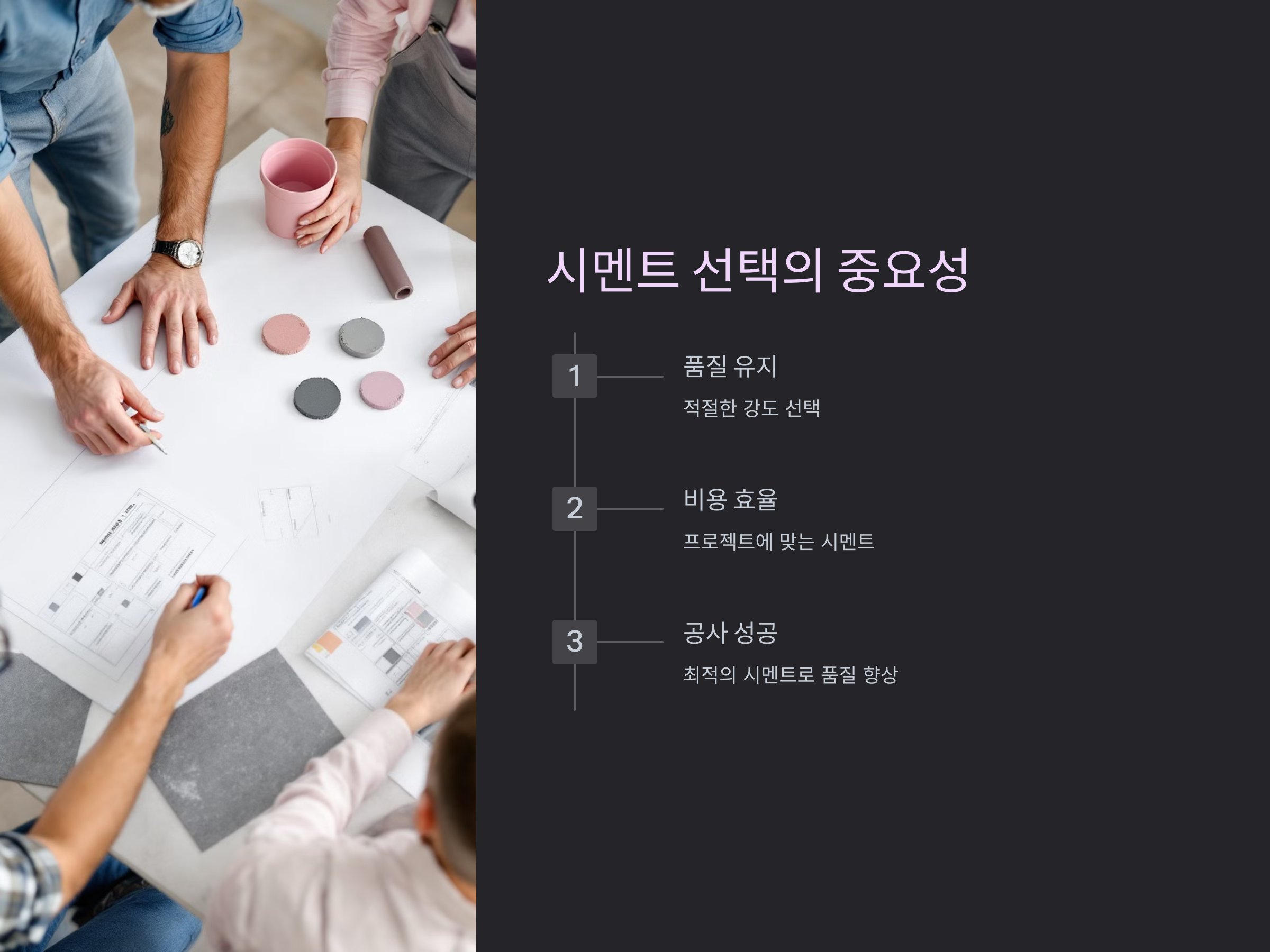 특수 시멘트는 일반 제품에 비해 가격이 높지만, 맞춤형 기능으로 공사 품질을 획기적으로 향상시킵니다.