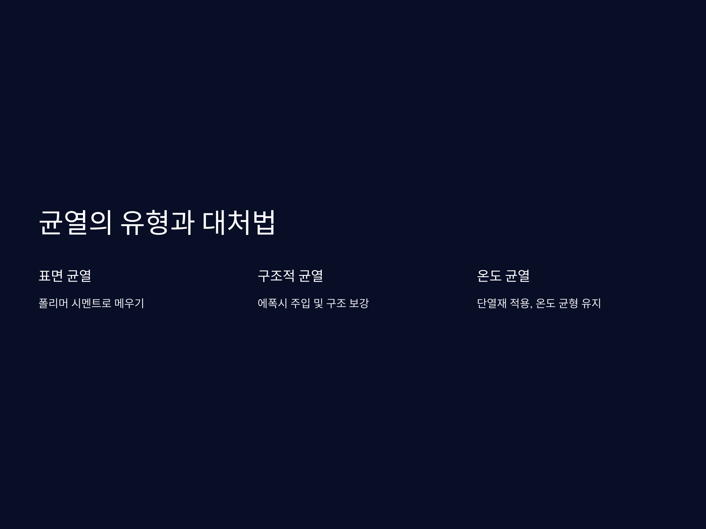 - 예방법: 열 팽창 계수를 고려한 설계 및 단열재 사용