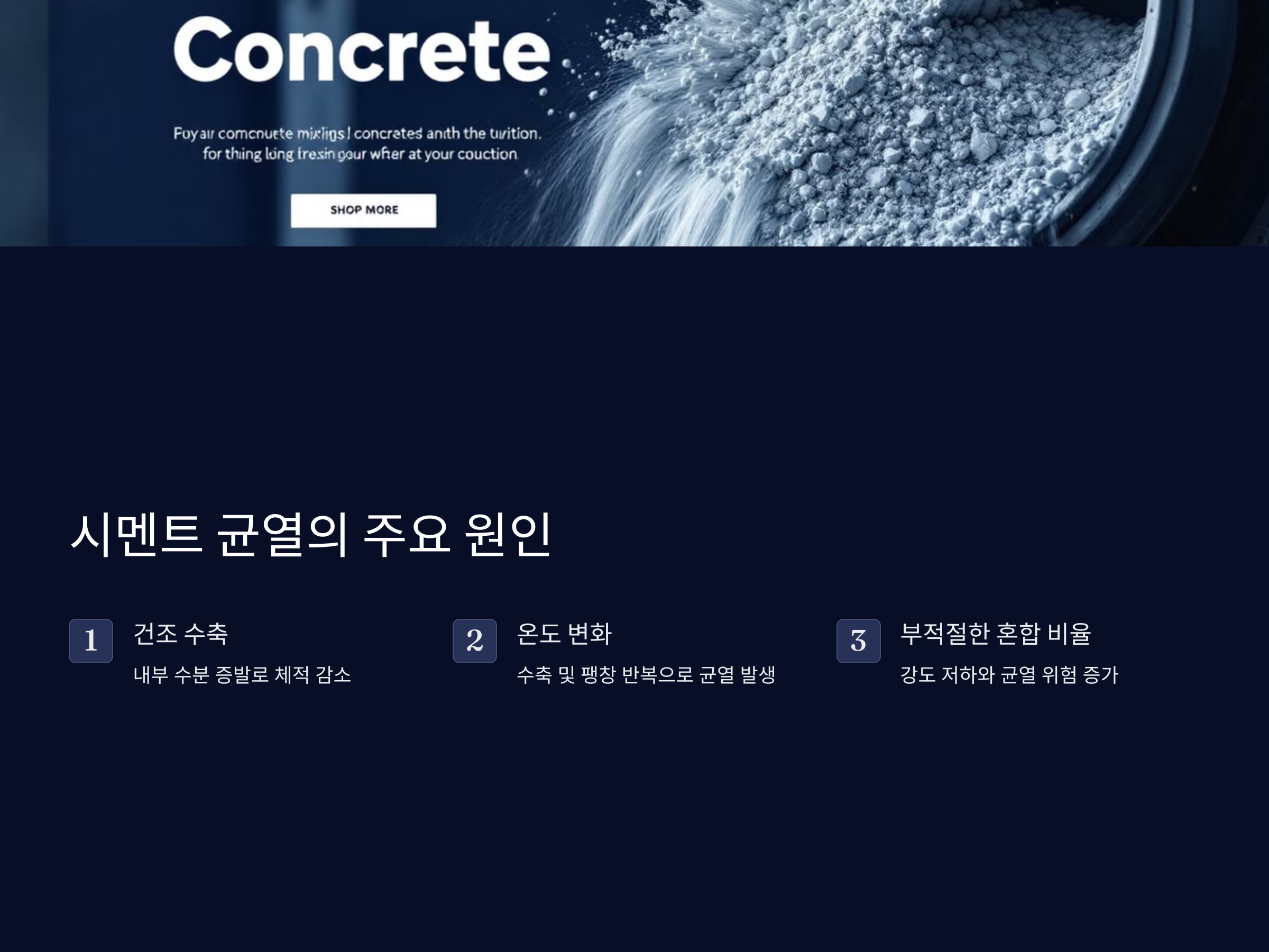 시멘트는 온도 변화에 민감합니다. 특히 낮과 밤의 급격한 온도 차이로 인해 시멘트 구조가 수축과 팽창을 반복하면 균열이 생길 수 있습니다.