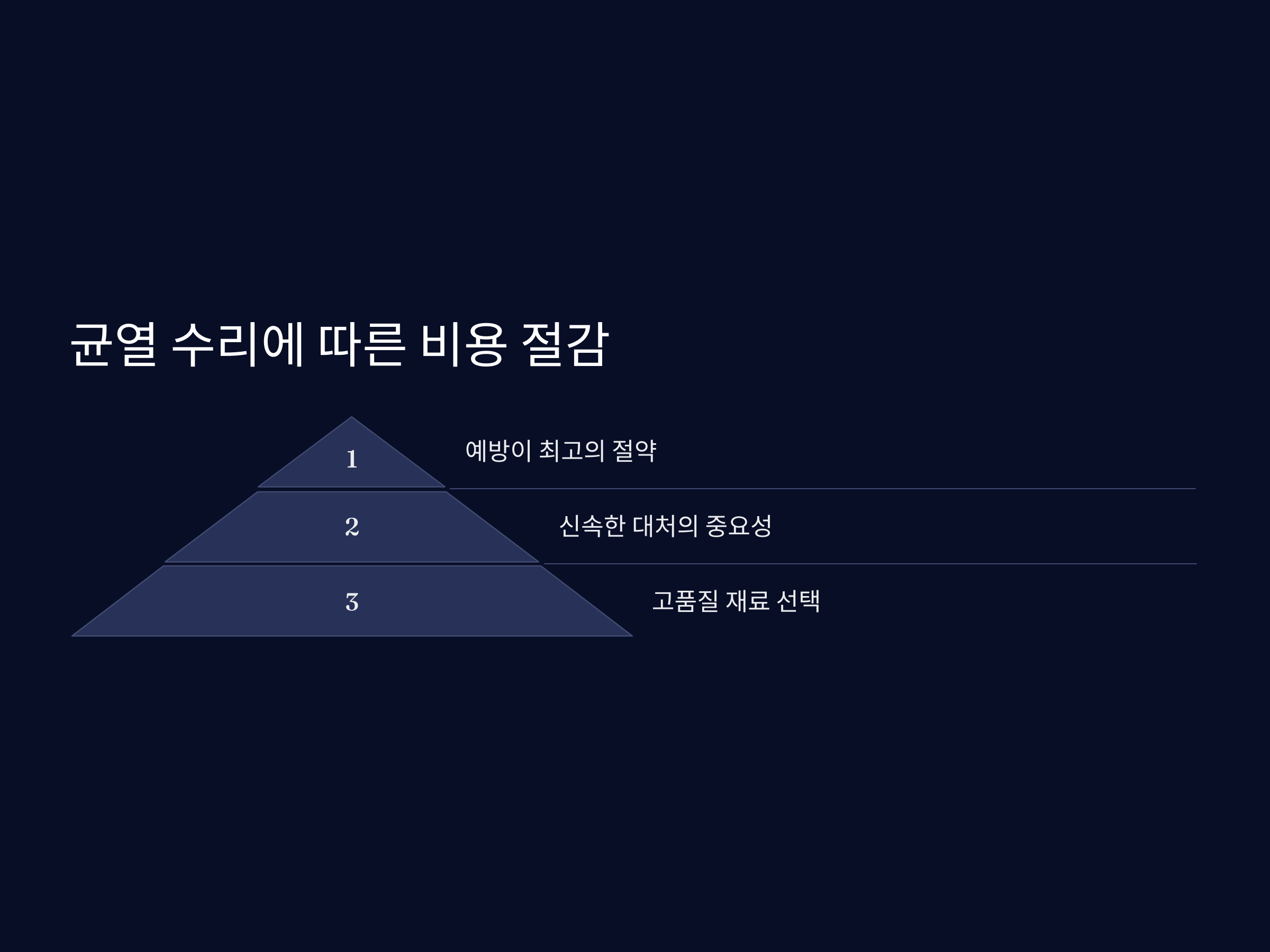 균열이 작을 때 즉시 보수하면 수리 비용이 대폭 감소합니다.