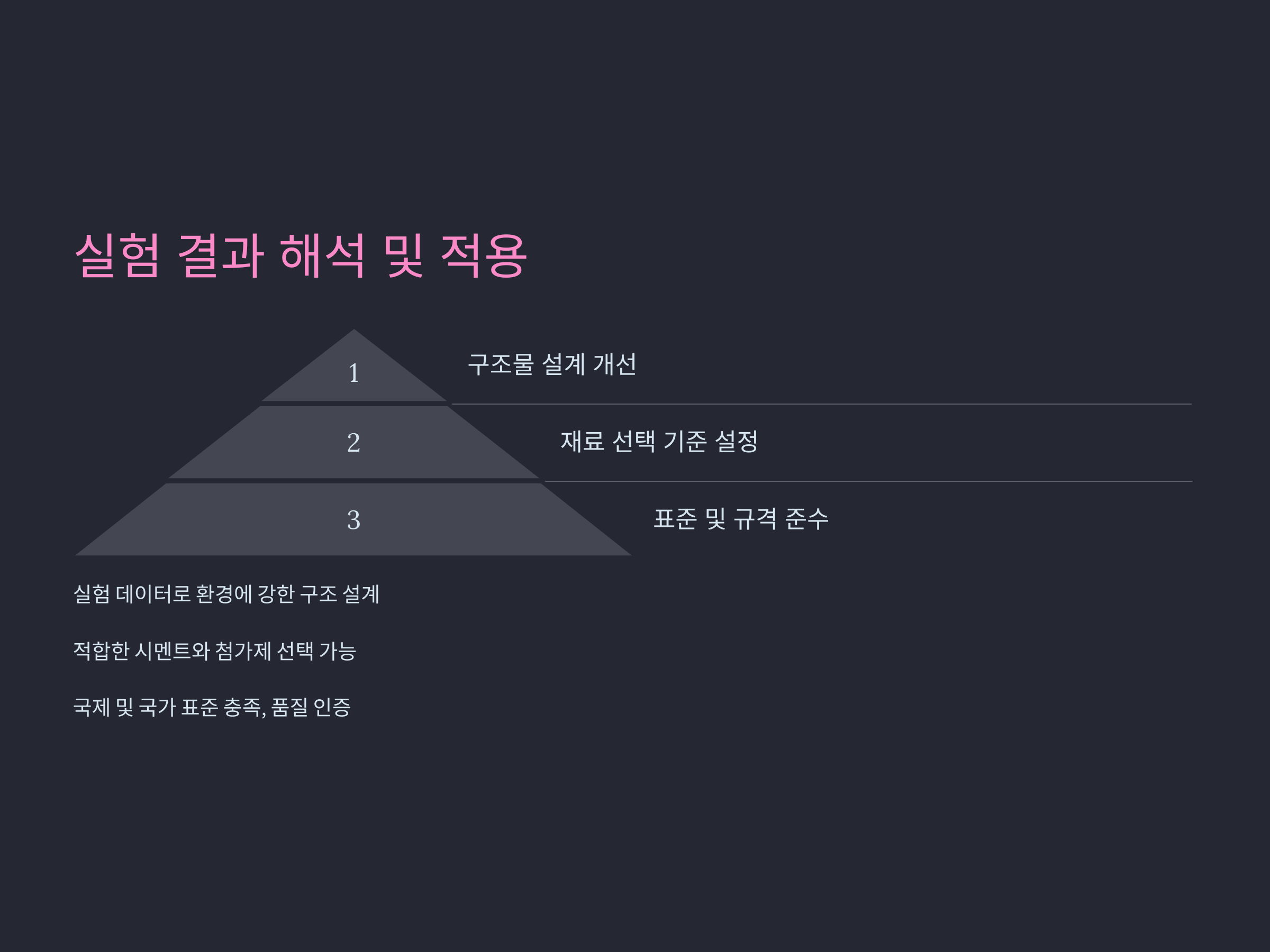 내구성 실험 결과를 바탕으로 적합한 시멘트 종류와 첨가제를 선택할 수 있습니다.