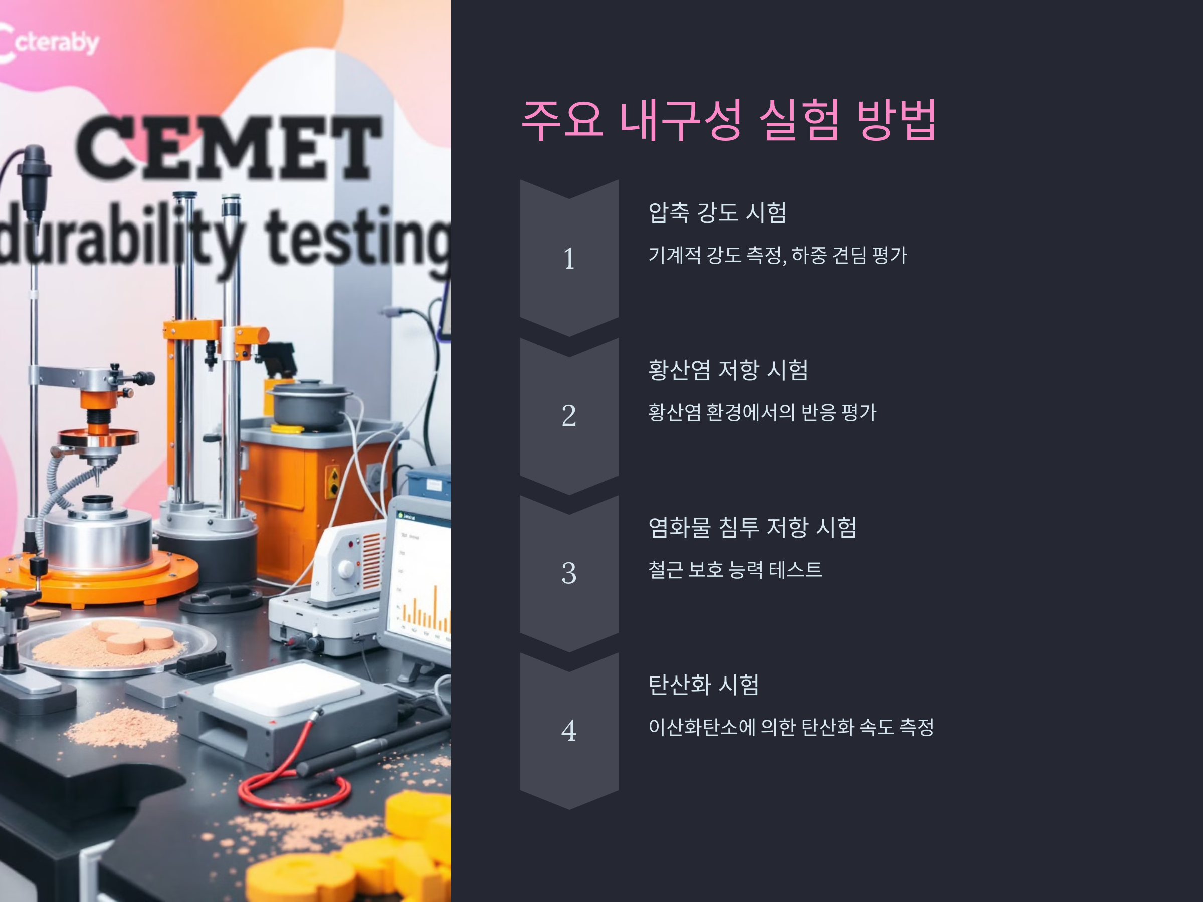 내구성 실험은 단순히 품질 평가를 넘어, 시멘트가 실제 환경에서 얼마나 효과적으로 기능할 수 있는지를 예측합니다.