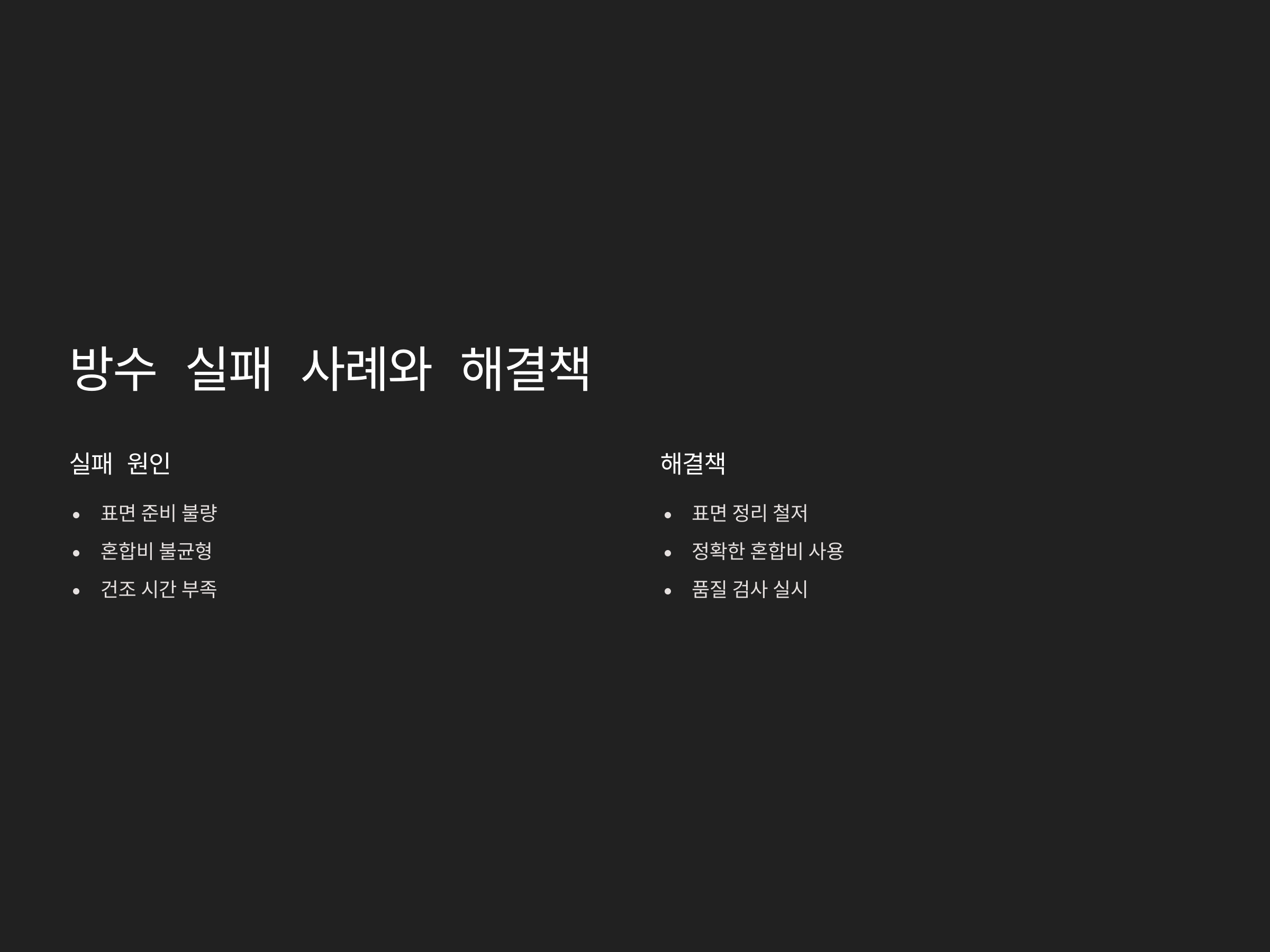 시멘트 방수 실패 사례와 해결책
