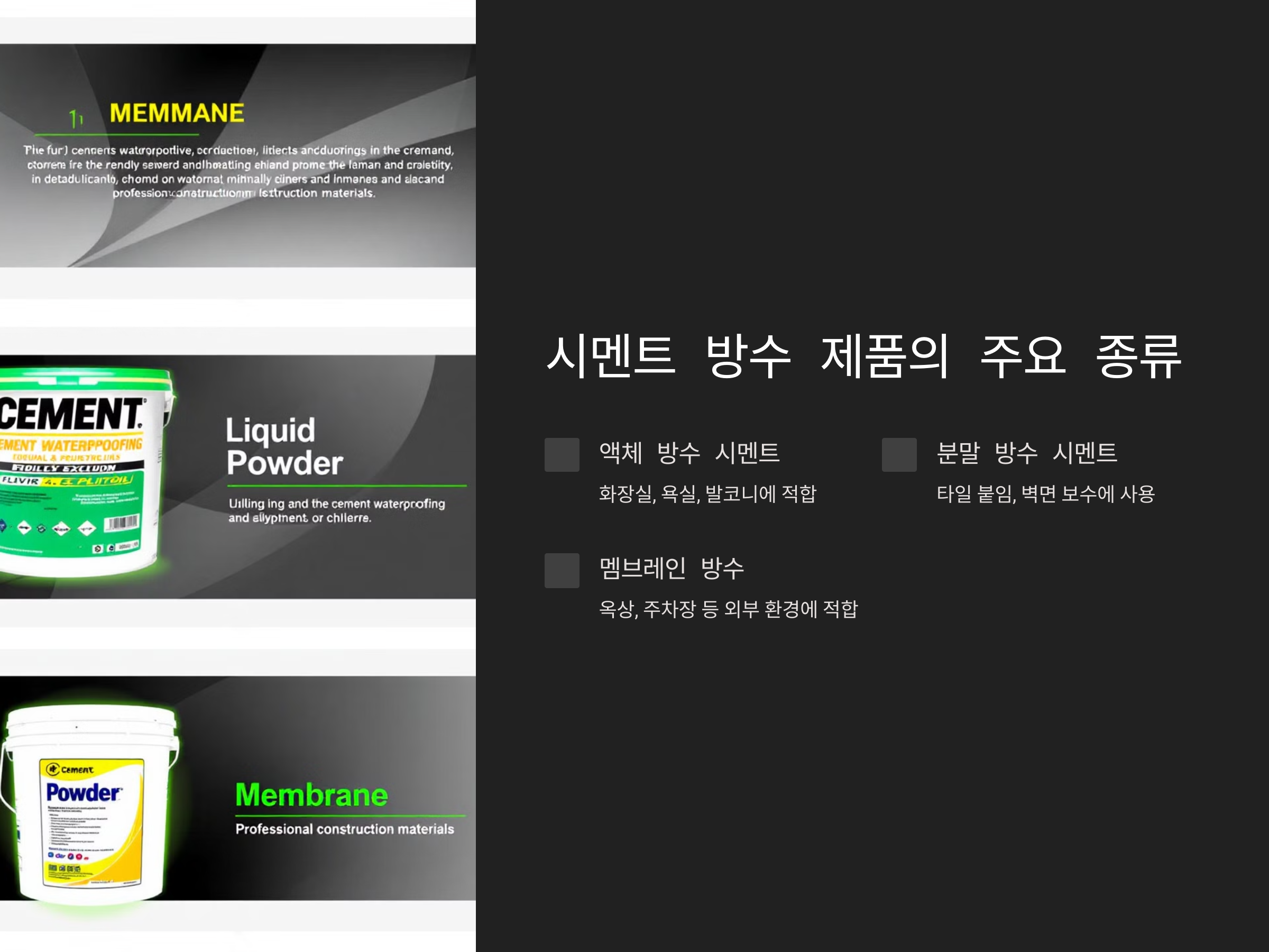 시멘트 방수 제품의 주요 종류