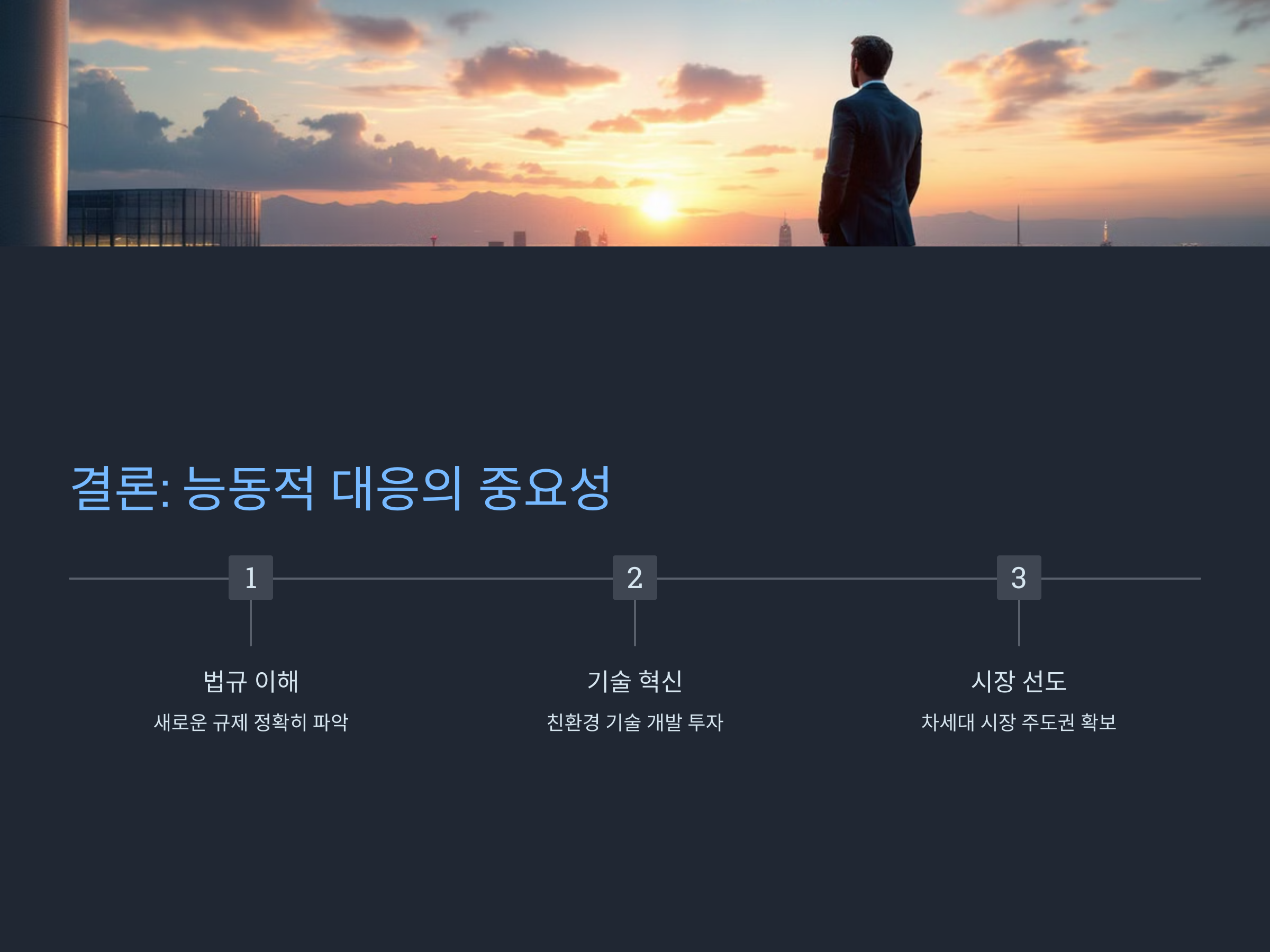 환경규제를 준수하지 않으면 사업 비용 증가와 함께 국제 시장 경쟁력 약화를 초래할 수 있으므로, 업계의 적극적인 참여가 필수적입니다.