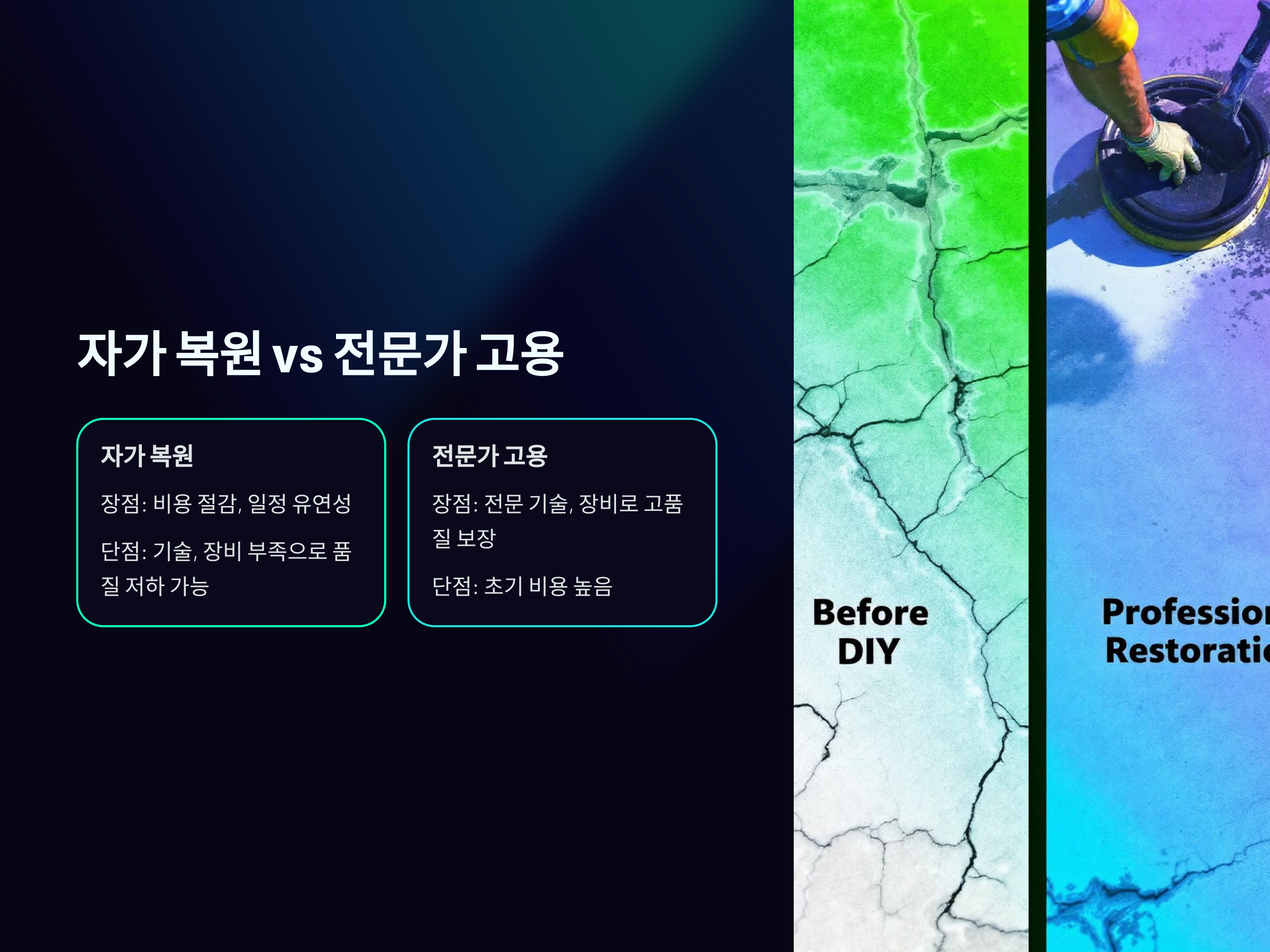 - 혼합 비율 오류: 시멘트와 물의 비율이 잘못되어 강도가 떨어지는 경우.