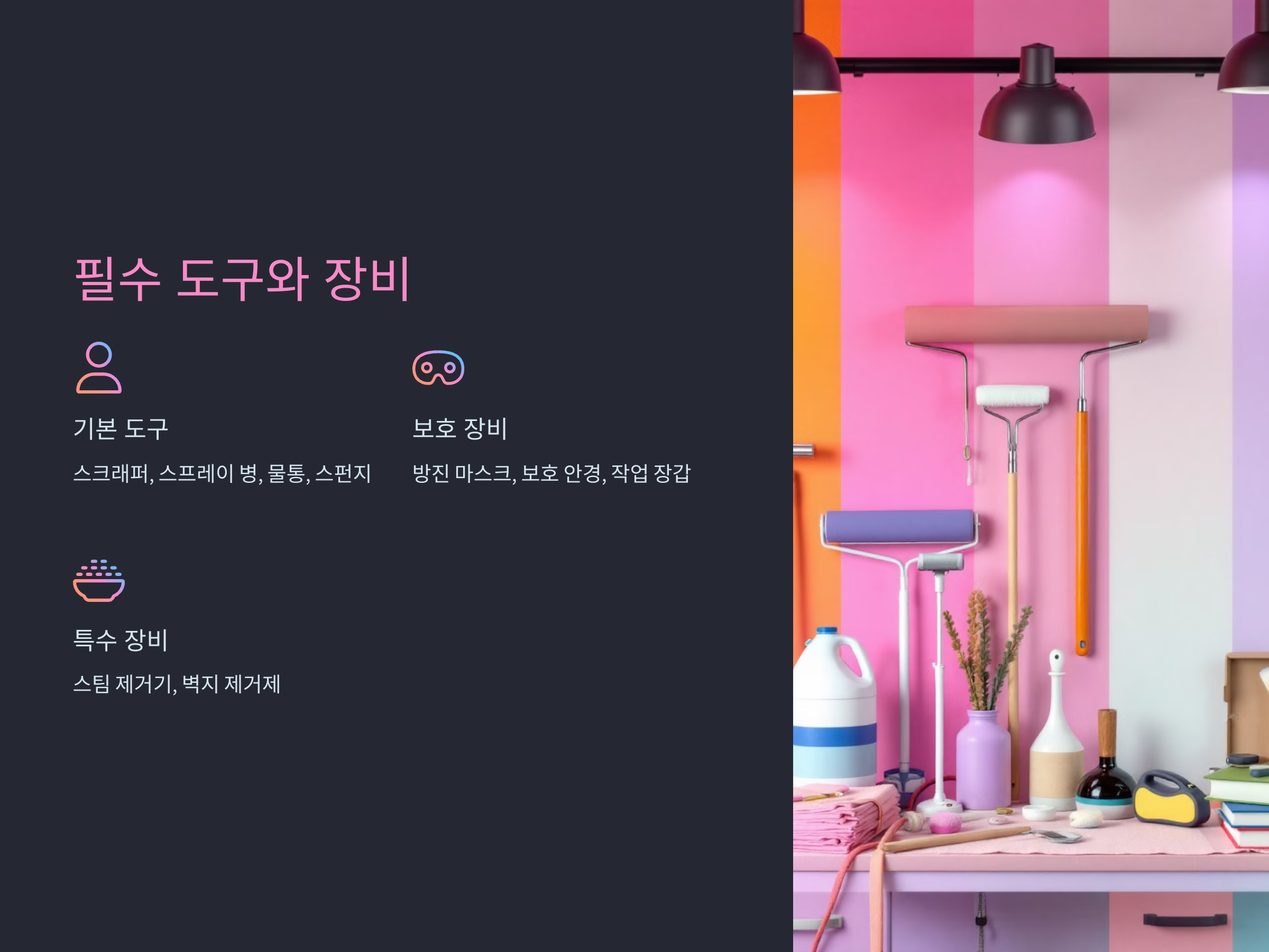 - 재료: 몰탈, 퍼티 나이프, 스크래퍼 등이 필요합니다.