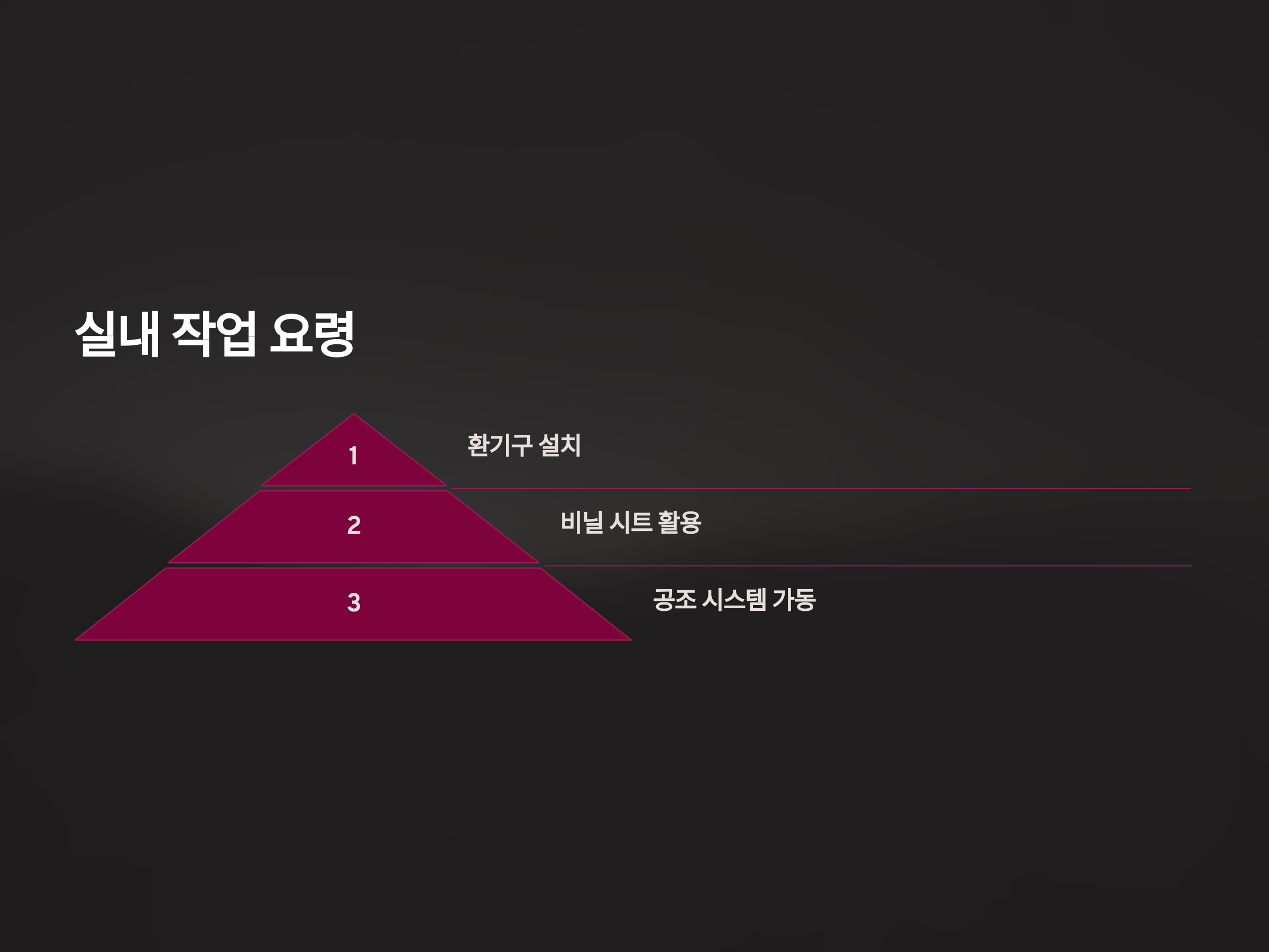 환기 시스템을 이용해 신선한 공기를 지속적으로 공급하면 시멘트의 표면 수분 제거 속도가 빨라집니다. 이는 자연 건조와 병행했을 때 효과적입니다.