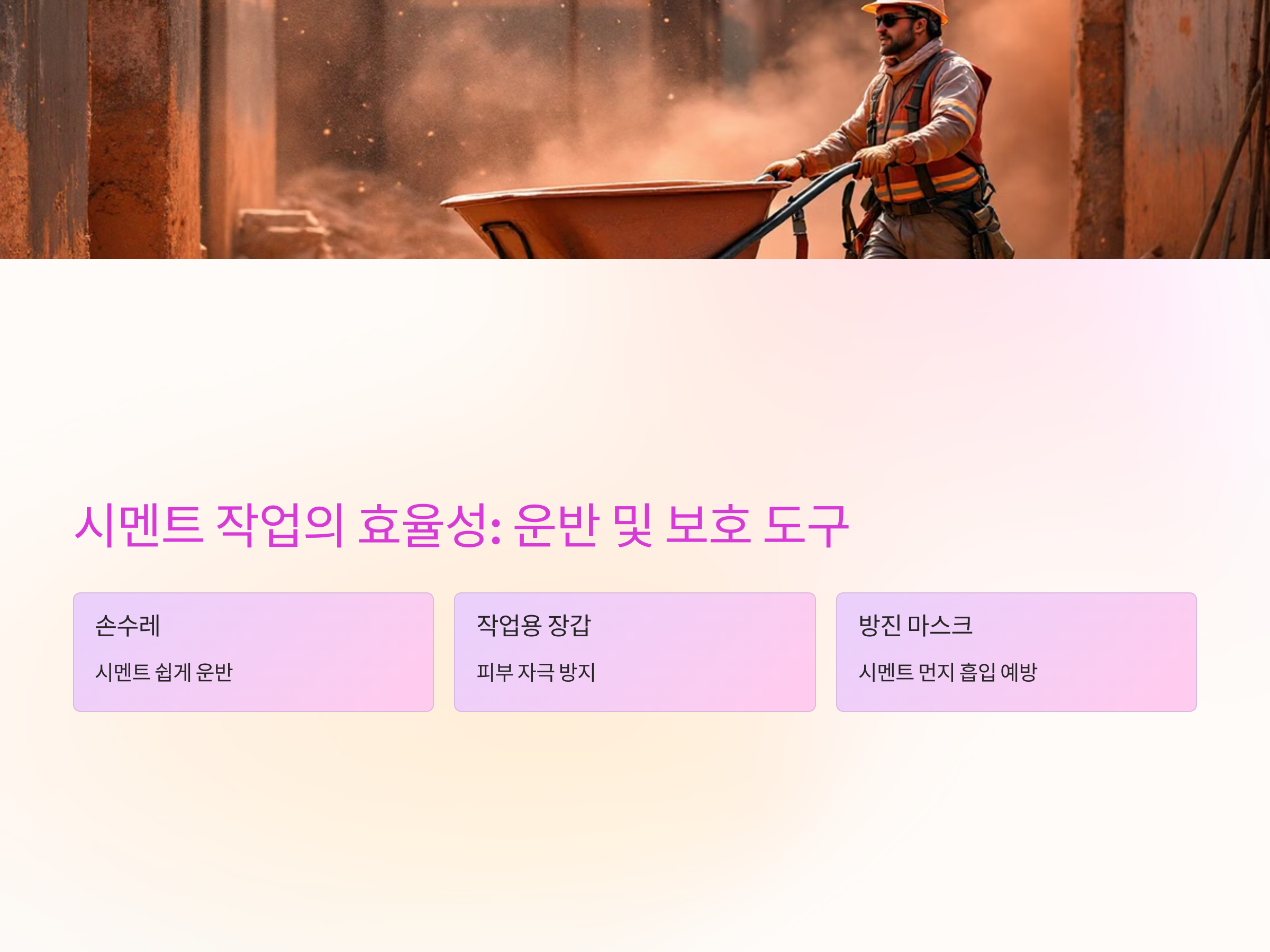 시멘트 작업의 효율성: 운반 및 보호 도구
