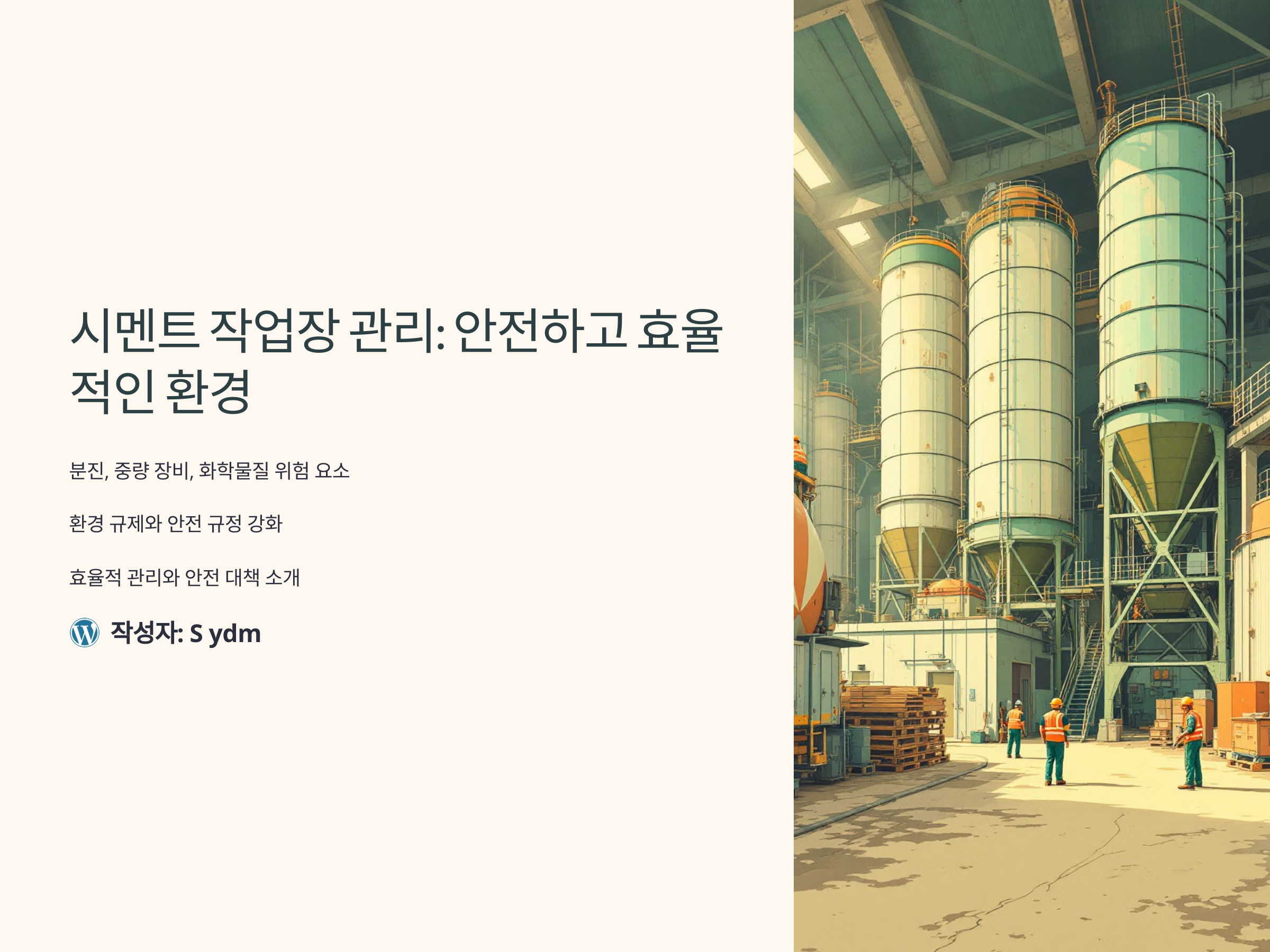 시멘트 작업장은 건설업과 산업 현장에서 필수적인 공간입니다. 그러나 작업 특성상 분진, 중량 장비, 화학물질 등의 위험 요소가 상존하며, 최근 강화된 환경 규제와 작업장 안전 규정으로 관리의 중요성이 더욱 커졌습니다. 이 글에서는 시멘트 작업장의 효율적인 관리 방법과 안전 대책, 그리고 생산성 향상을 위한 실질적인 팁을 소개합니다.