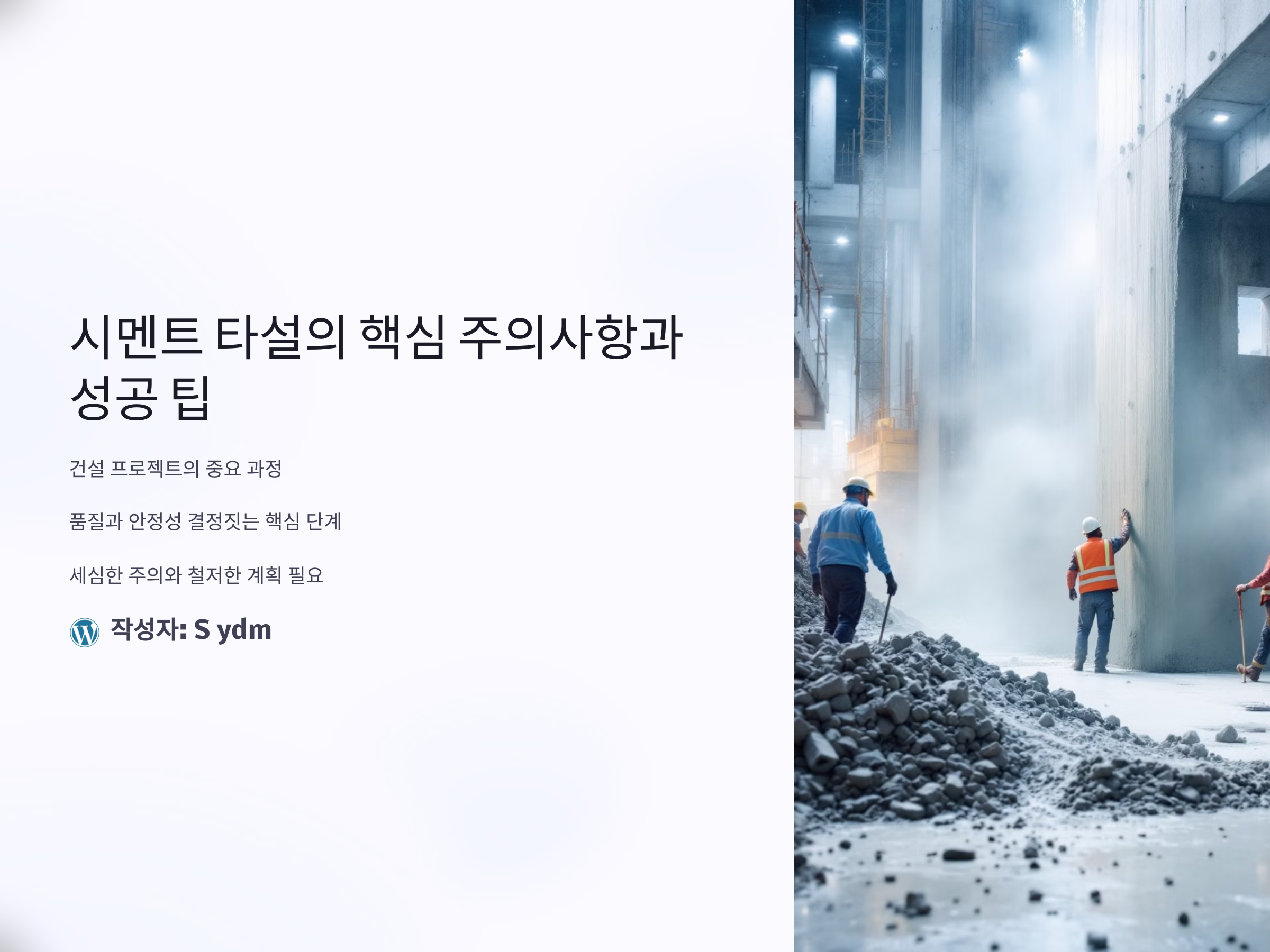 시멘트 타설 작업은 건설 프로젝트에서 가장 중요한 과정 중 하나입니다. 작업의 품질과 구조물의 안정성을 결정짓는 핵심 단계이기 때문에, 세심한 주의와 철저한 계획이 필요합니다. 이 글에서는 시멘트 타설 전후로 꼭 지켜야 할 주의사항과 문제를 예방하는 실질적인 팁을 제공합니다. 이를 통해 효율적이고 안전한 시공을 달성할 수 있습니다.