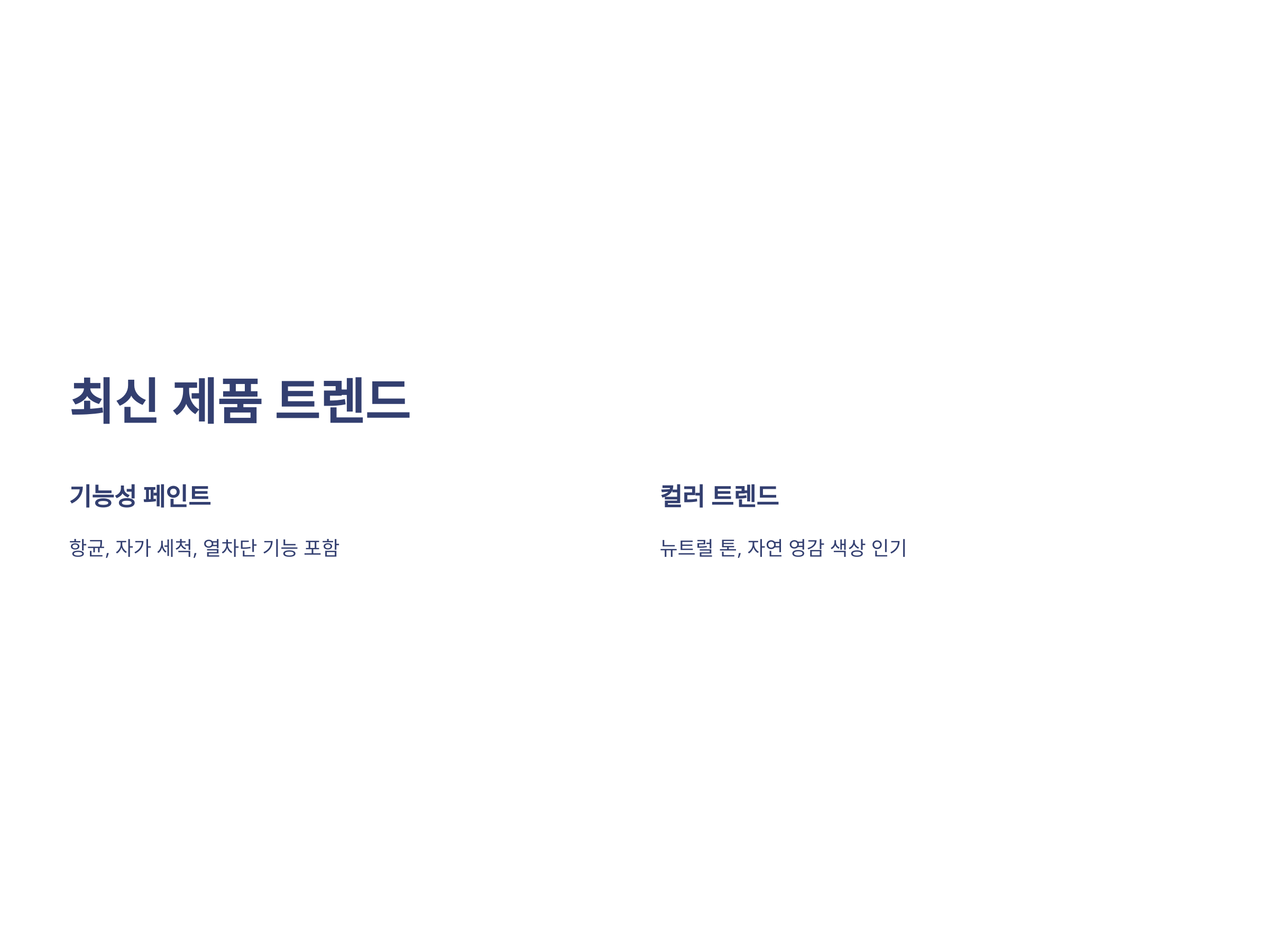 | 도레이페인트 | 항균, 자가 세척 | 첨단 기술 적용 |