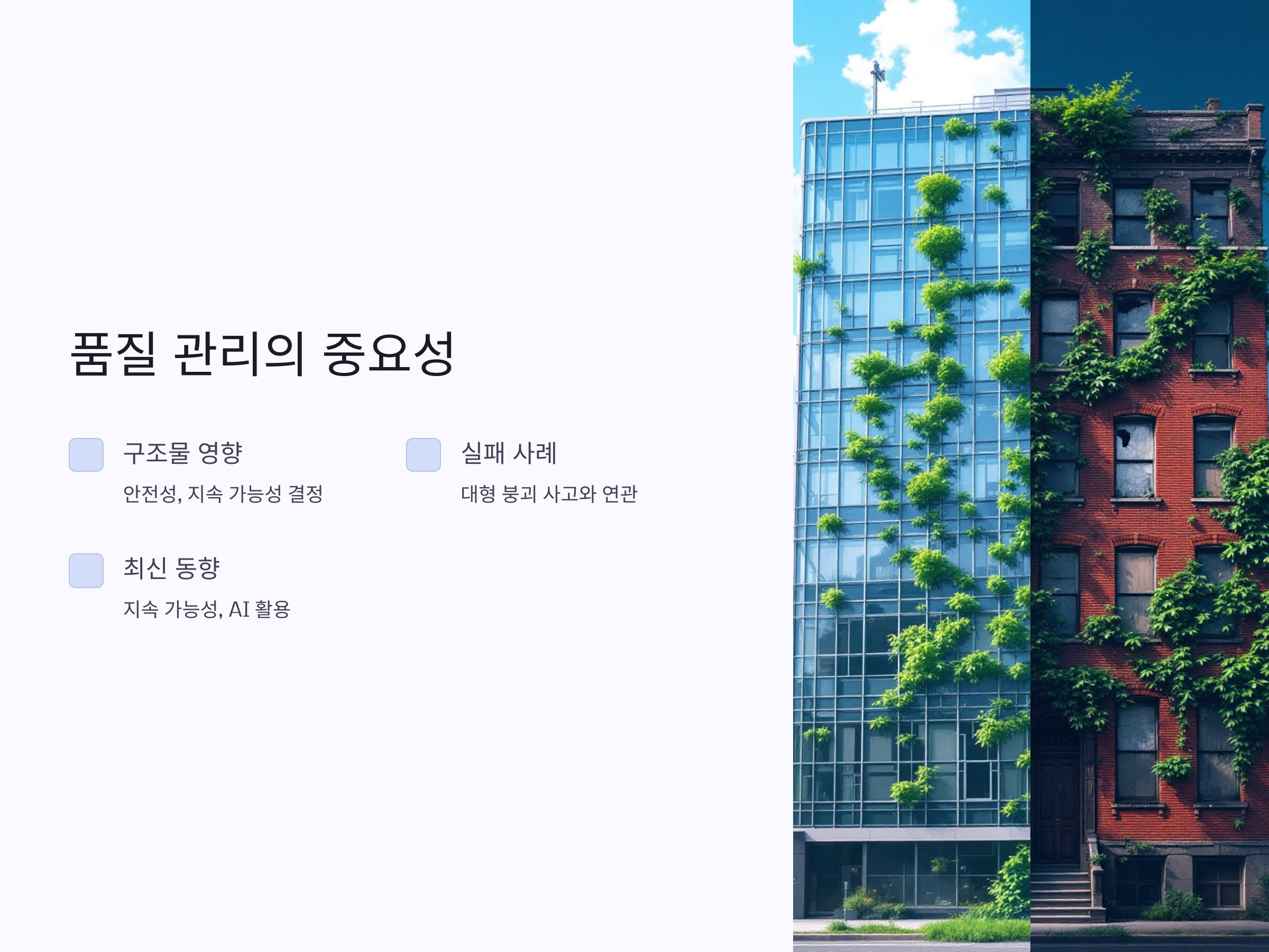세계적으로 발생했던 대형 붕괴 사고 중 상당수가 부실한 시멘트 품질 관리와 관련이 있습니다. 이러한 실패는 단순히 비용 문제를 넘어 생명과 재산의 안전을 위협합니다.