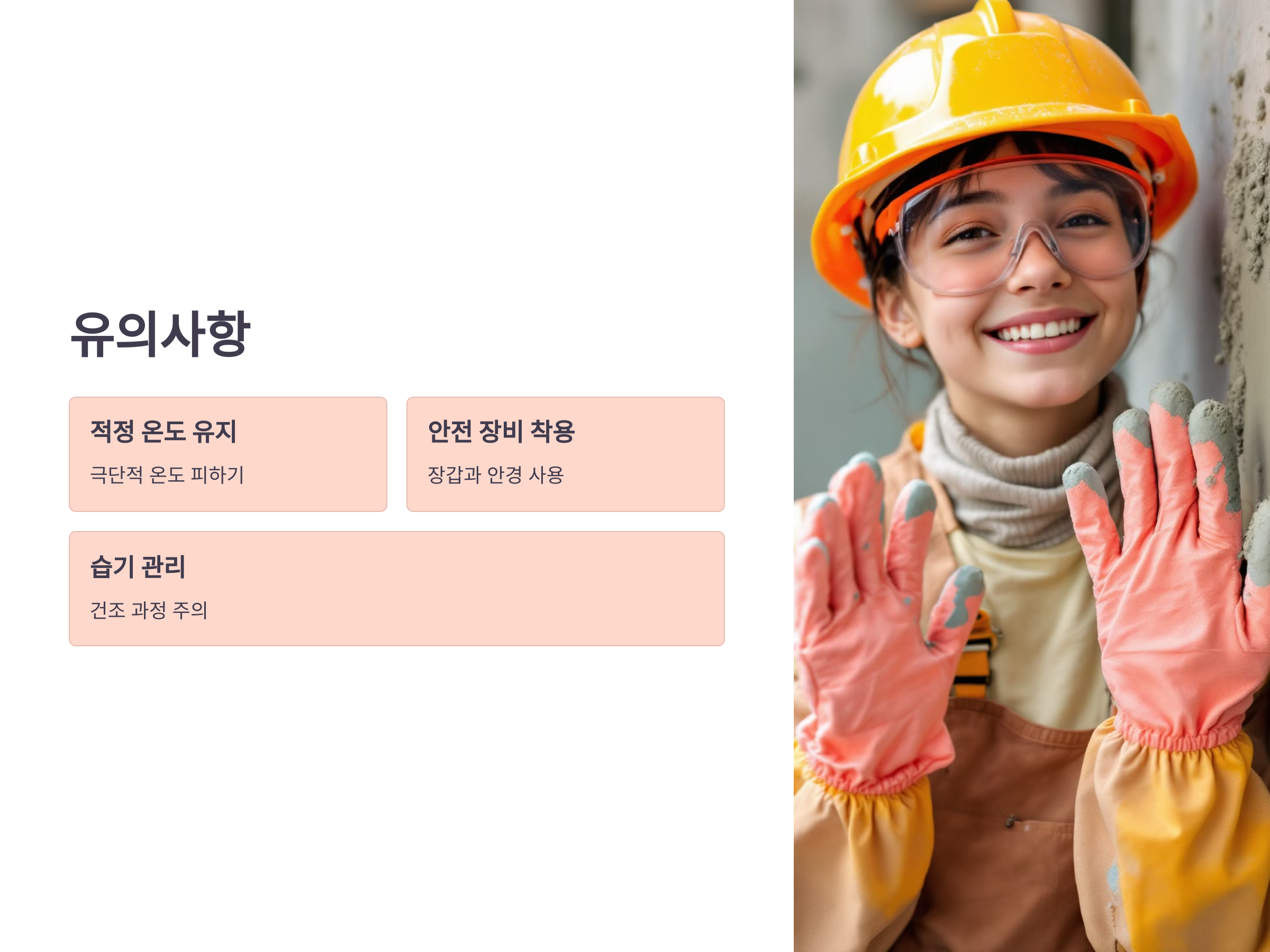 - 적정 온도 유지: 너무 춥거나 더운 환경에서는 작업 품질이 떨어질 수 있습니다.