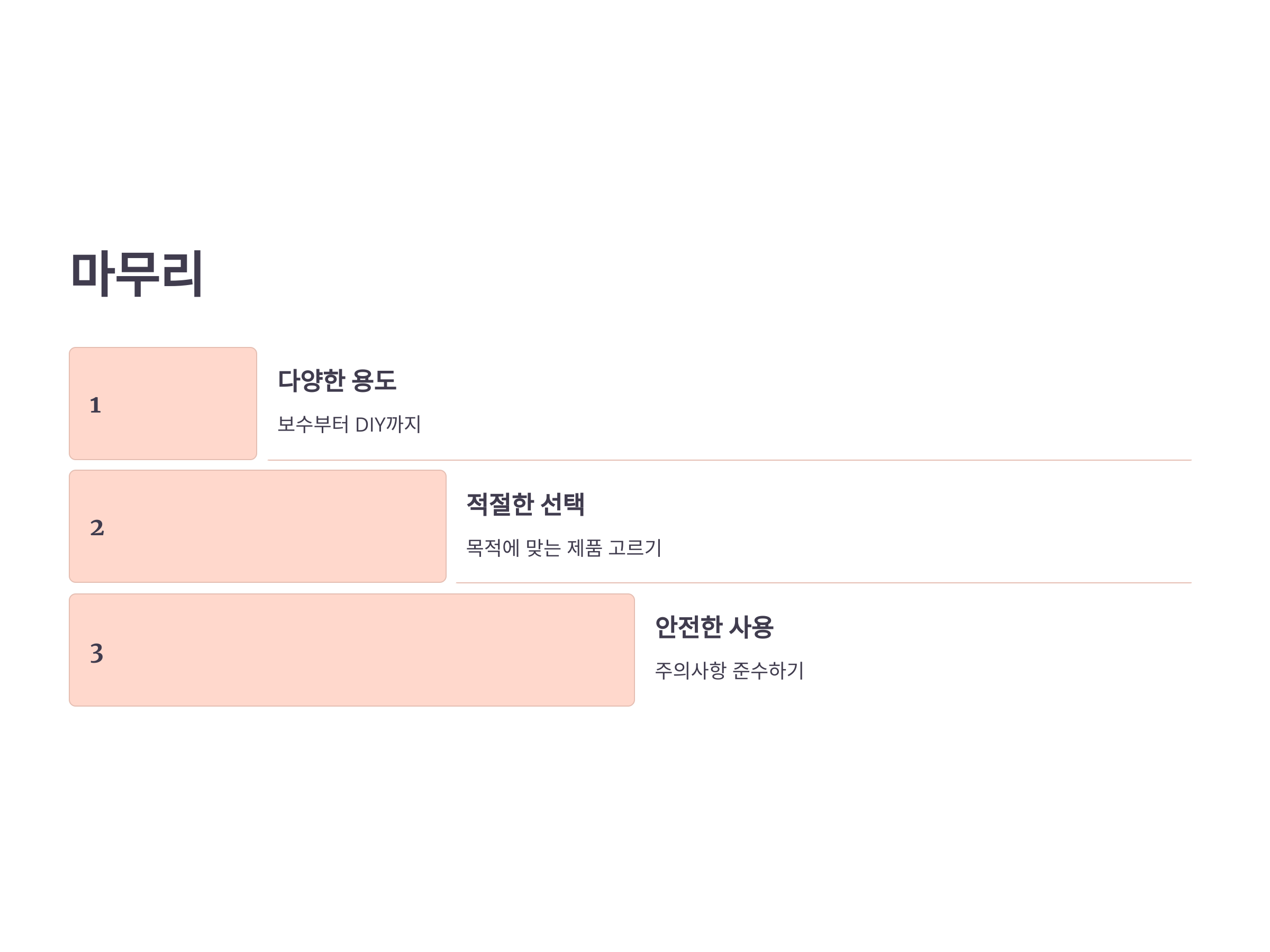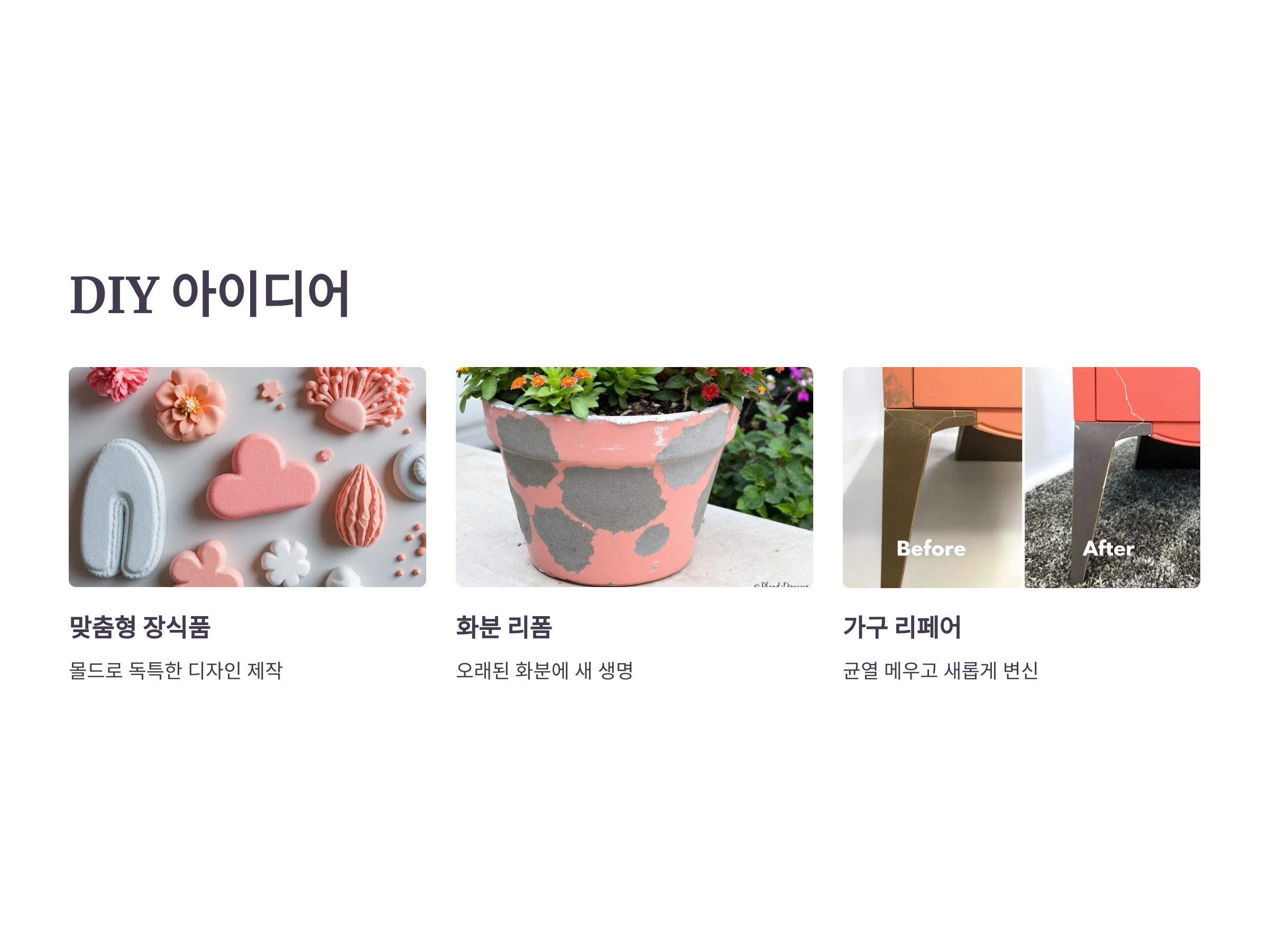 시멘트 필러는 단순한 보수 작업 외에도 다양한 DIY 프로젝트에 활용될 수 있습니다.