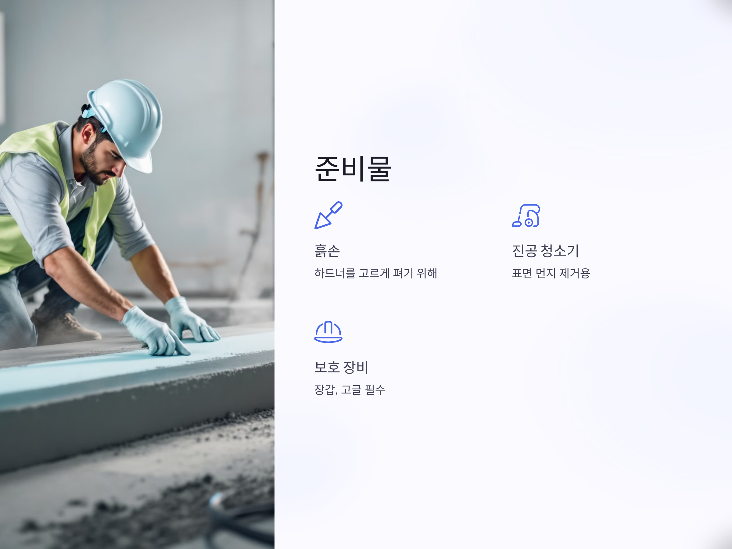 시멘트 하드너 사용을 위한 준비물