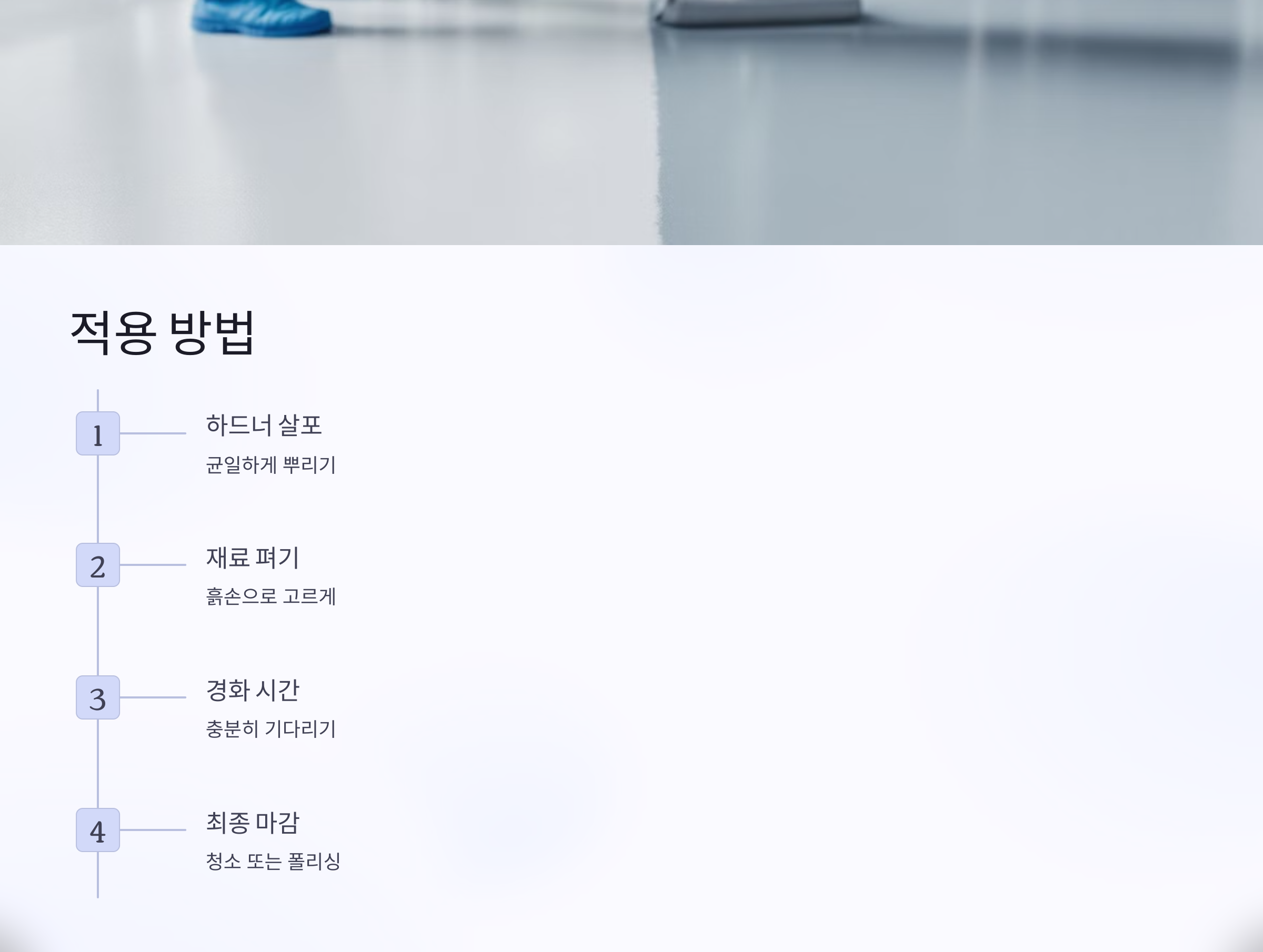 - 재료 고르게 펴기: 흙손이나 브러시로 하드너를 표면에 고르게 펴줍니다.