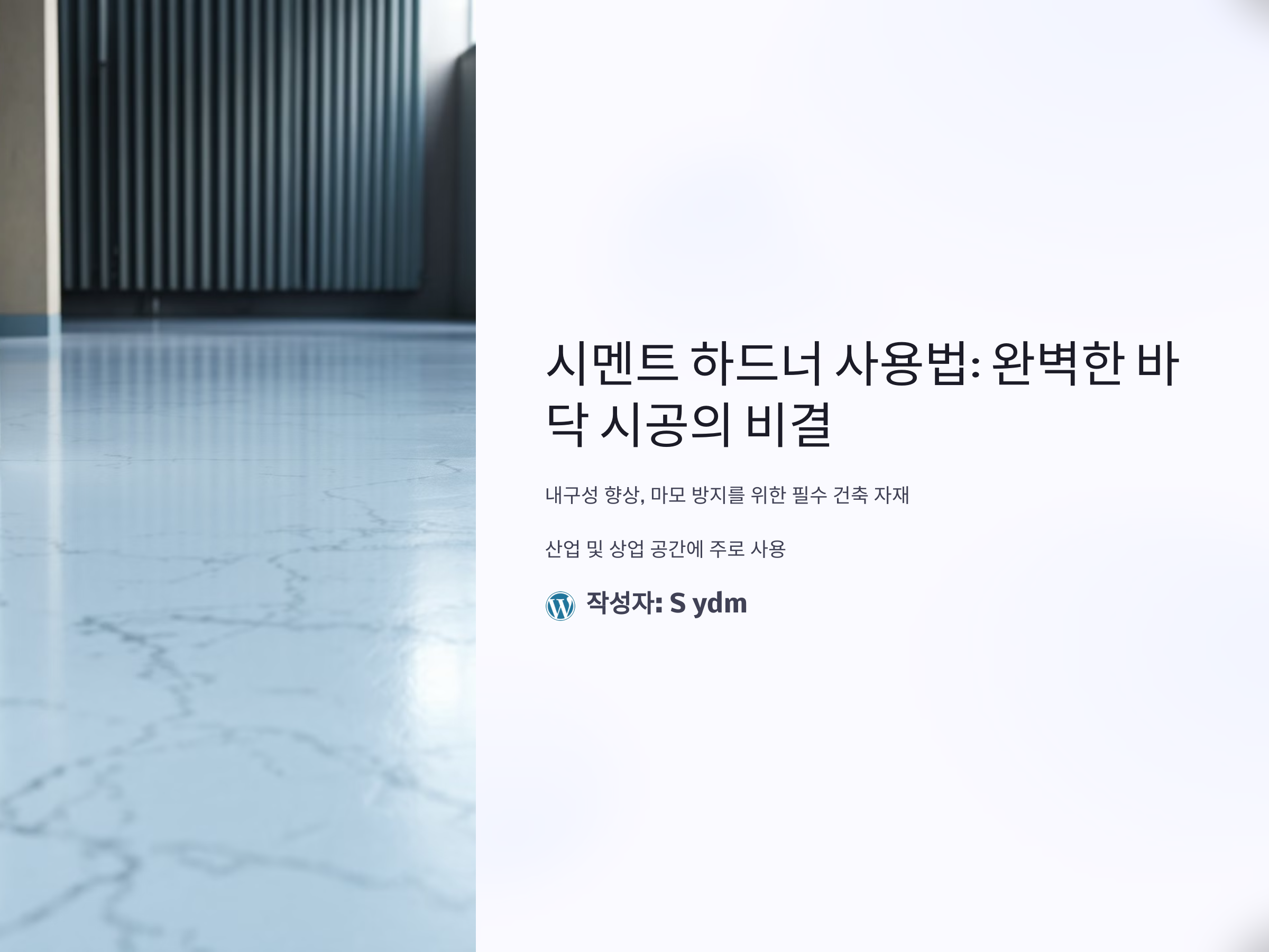 시멘트 하드너는 바닥의 내구성을 높이고 마모를 방지하는 데 필수적인 건축 자재입니다. 주로 주차장, 공장 바닥, 창고 등과 같은 산업 및 상업 공간에서 사용되며, 올바르게 적용하면 시멘트 표면의 강도와 수명을 극대화할 수 있습니다. 하지만 사용법을 정확히 알지 못하면 기대했던 효과를 얻기 어려우며, 오히려 작업 시간이 늘어나거나 재료가 낭비될 수 있습니다. 이번 포스팅에서는 시멘트 하드너를 처음 사용하는 초보자도 쉽게 따라 할 수 있도록 사용법, 주의사항, 그리고 전문가의 팁까지 상세히 안내합니다.