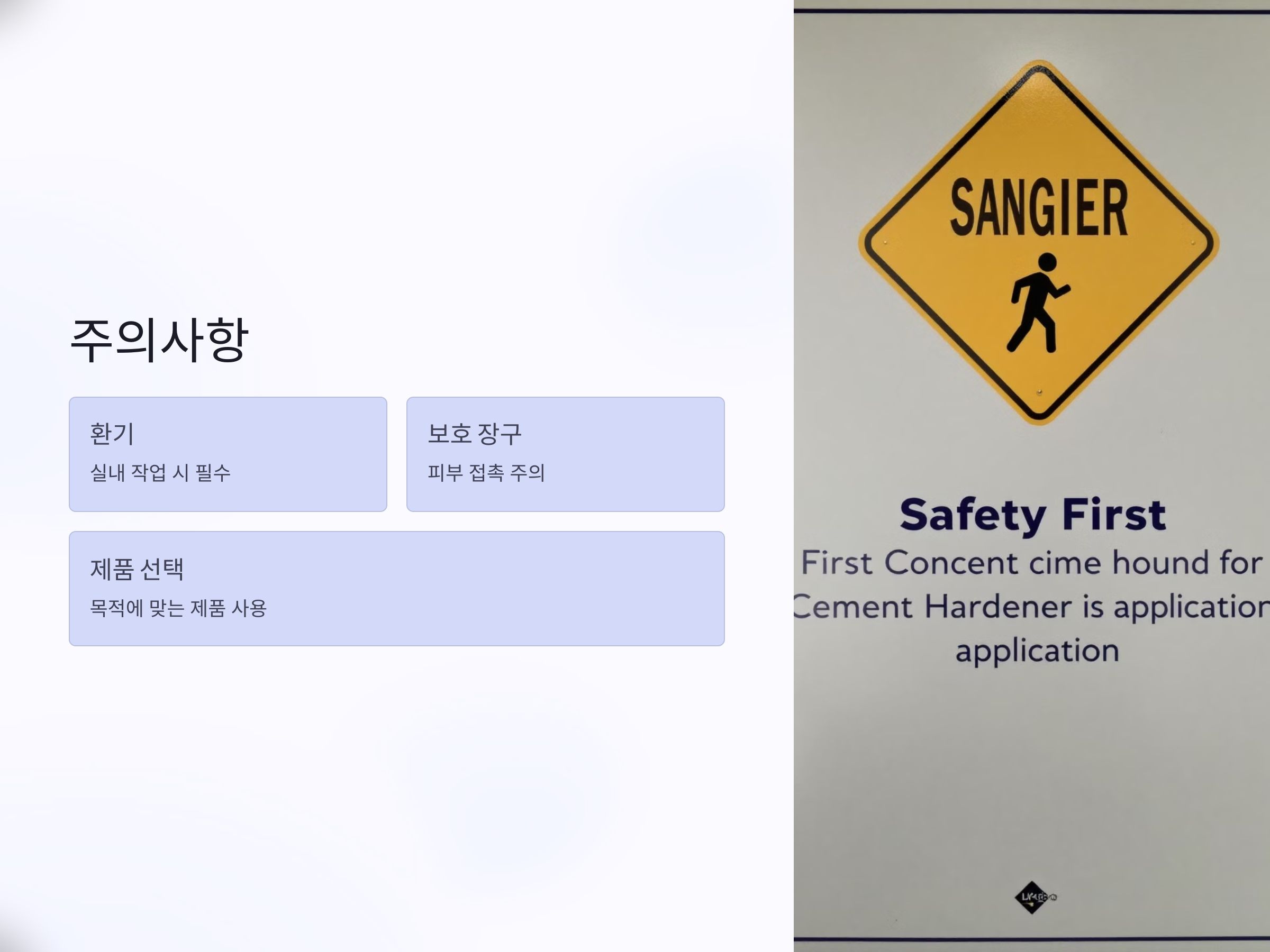 - 시멘트 하드너: 사용 목적에 적합한 제품 선택.