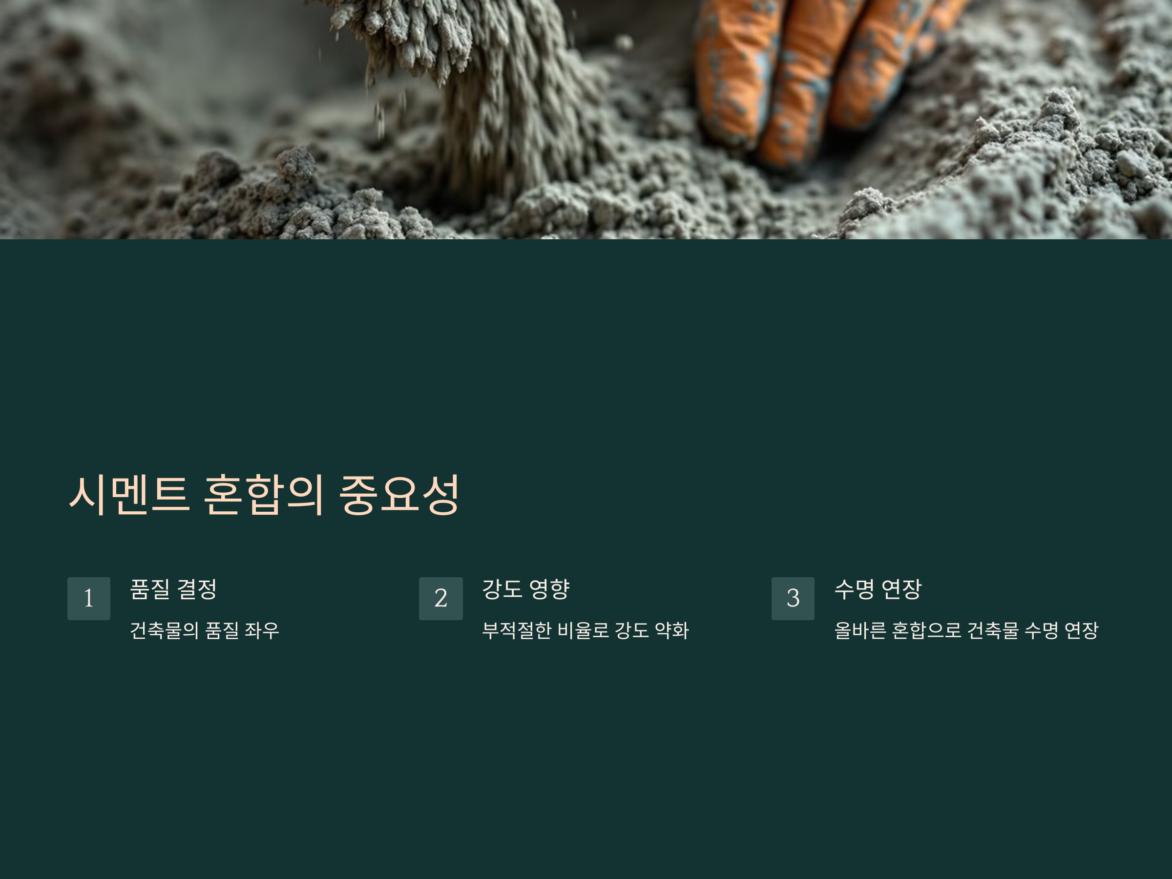 멘트 혼합 비율은 건축물의 품질을 좌우하는 핵심 요소입니다. 적절한 비율로 혼합하지 않으면 강도가 약해지고, 건축물의 수명이 단축될 위험이 있습니다. 특히, 기초공사, 벽돌 작업, 미장, 포장 등의 용도에 따라 혼합 비율이 다르므로 이를 이해하는 것이 중요합니다. 아래에서는 각 용도에 적합한 시멘트 혼합 비율을 철저히 분석해, 건축 작업에 도움이 되는 팁과 상세 정보를 제공합니다.