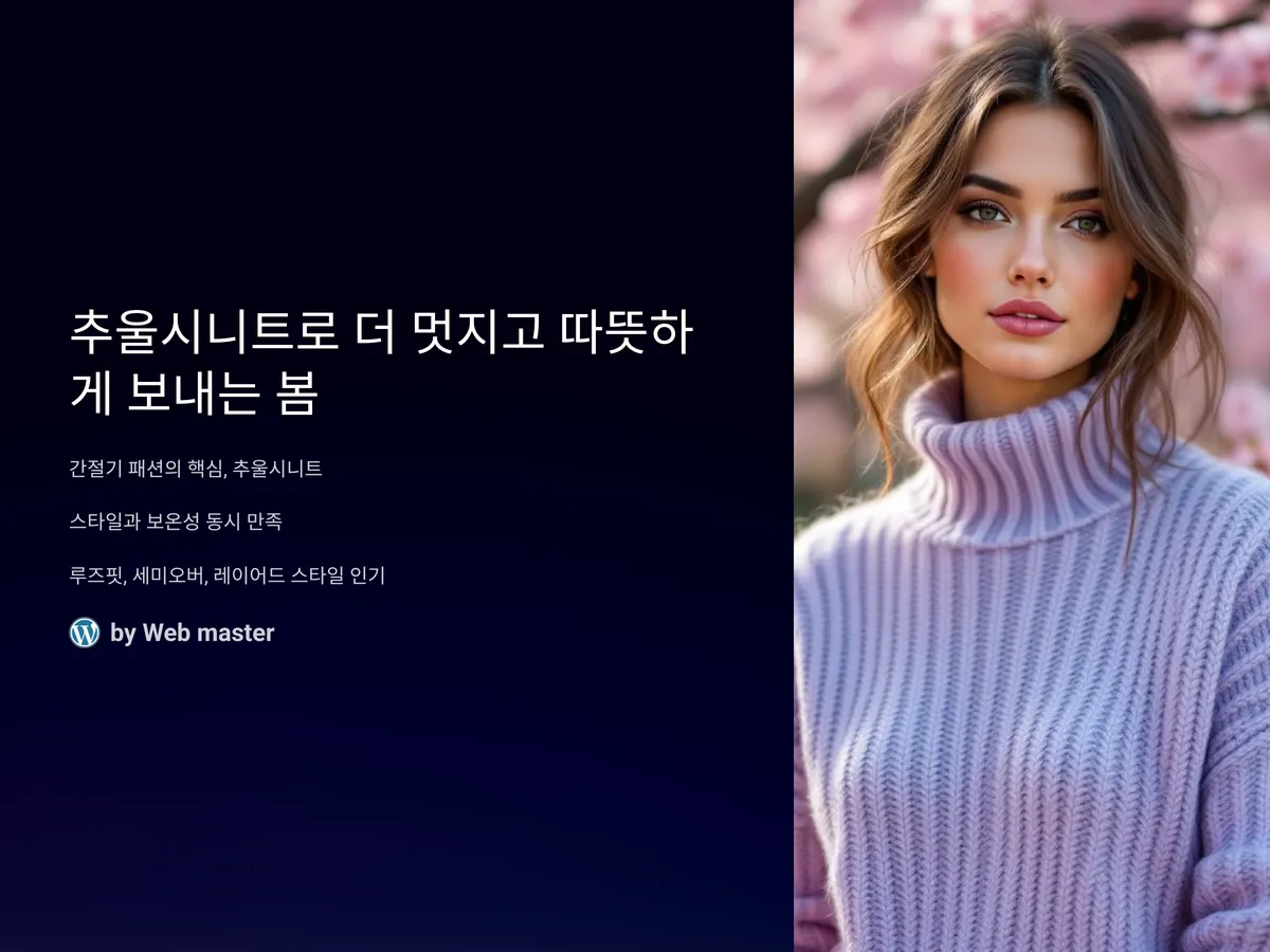 봄이라고 방심하면 큰일! 아침 저녁은 쌀쌀하고 낮에는 더운 요즘, 체온 조절이 어려운 날씨 속에서 '추울시니트'가 다시 주목받고 있습니다. 이름처럼 '추울 시 니트'는 간절기 패션의 핵심 아이템으로, 스타일과 보온성을 동시에 만족시켜주는 전천후 의류입니다. 최근 패션 트렌드 분석 결과에 따르면, 루즈핏 니트와 세미오버 스타일, 그리고 레이어드 연출이 가능한 얇은 니트가 인기를 끌고 있으며, 이러한 니트 제품군은 실내외 온도 변화에도 유연하게 대응할 수 있어 직장인, 대학생, 프리랜서 모두에게 인기를 얻고 있습니다.